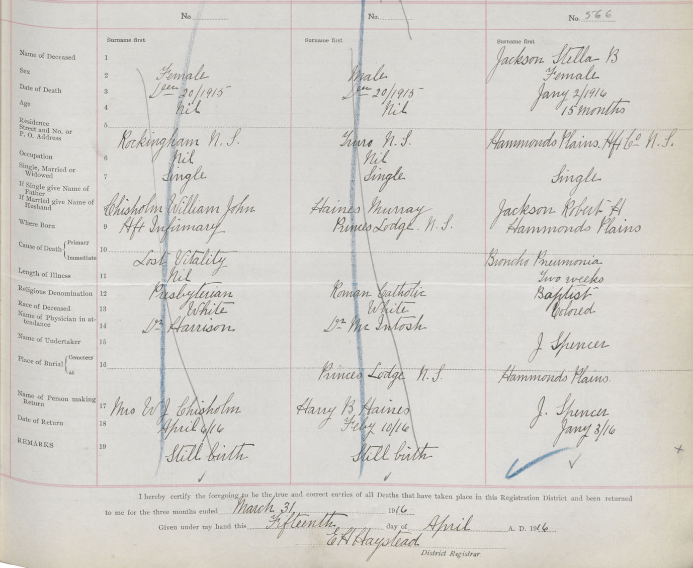 Female Death Registration: Year: 1916 book: 34 page: 175 number: 566