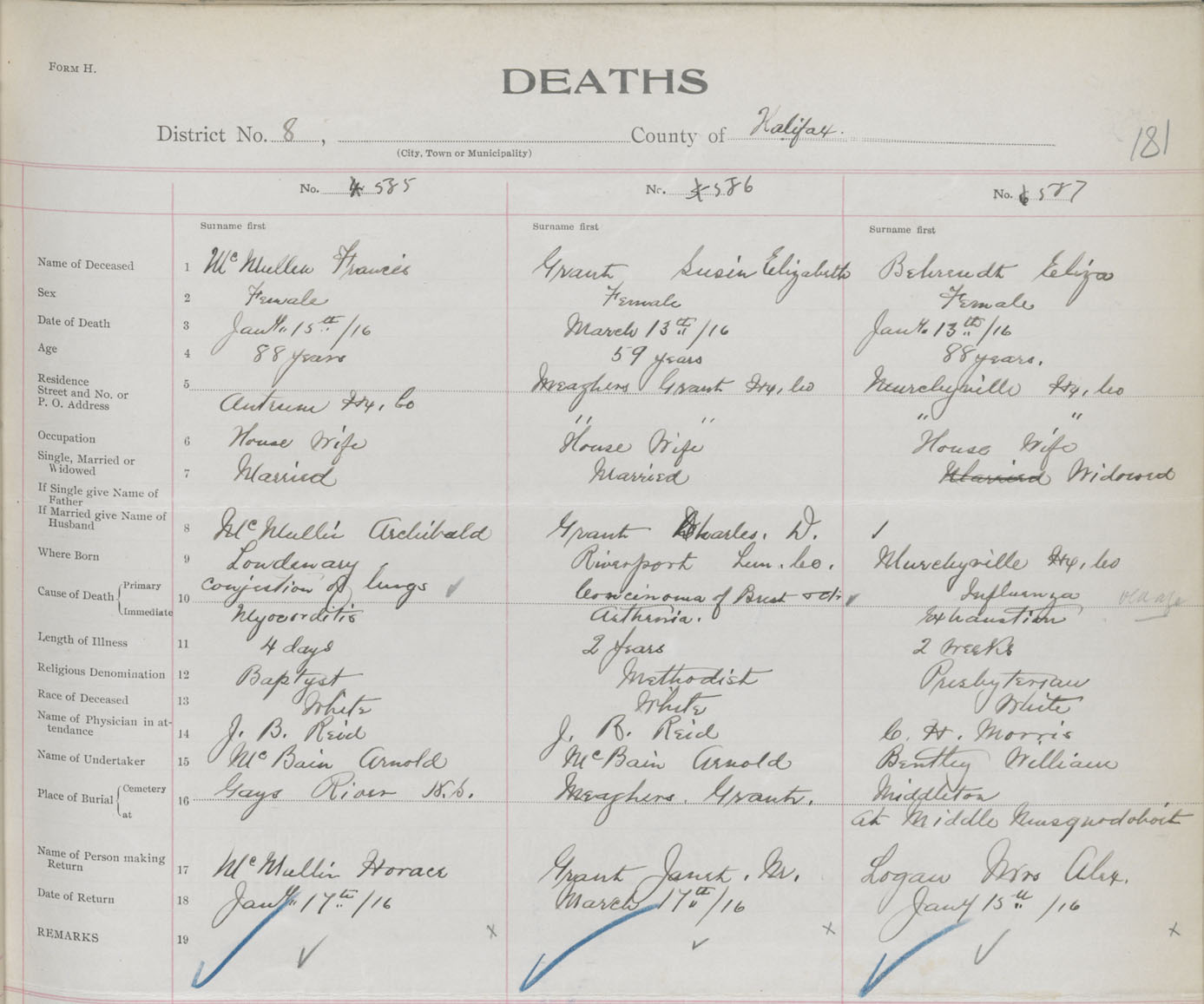 Female Death Registration: Year: 1916 book: 34 page: 181 number: 587