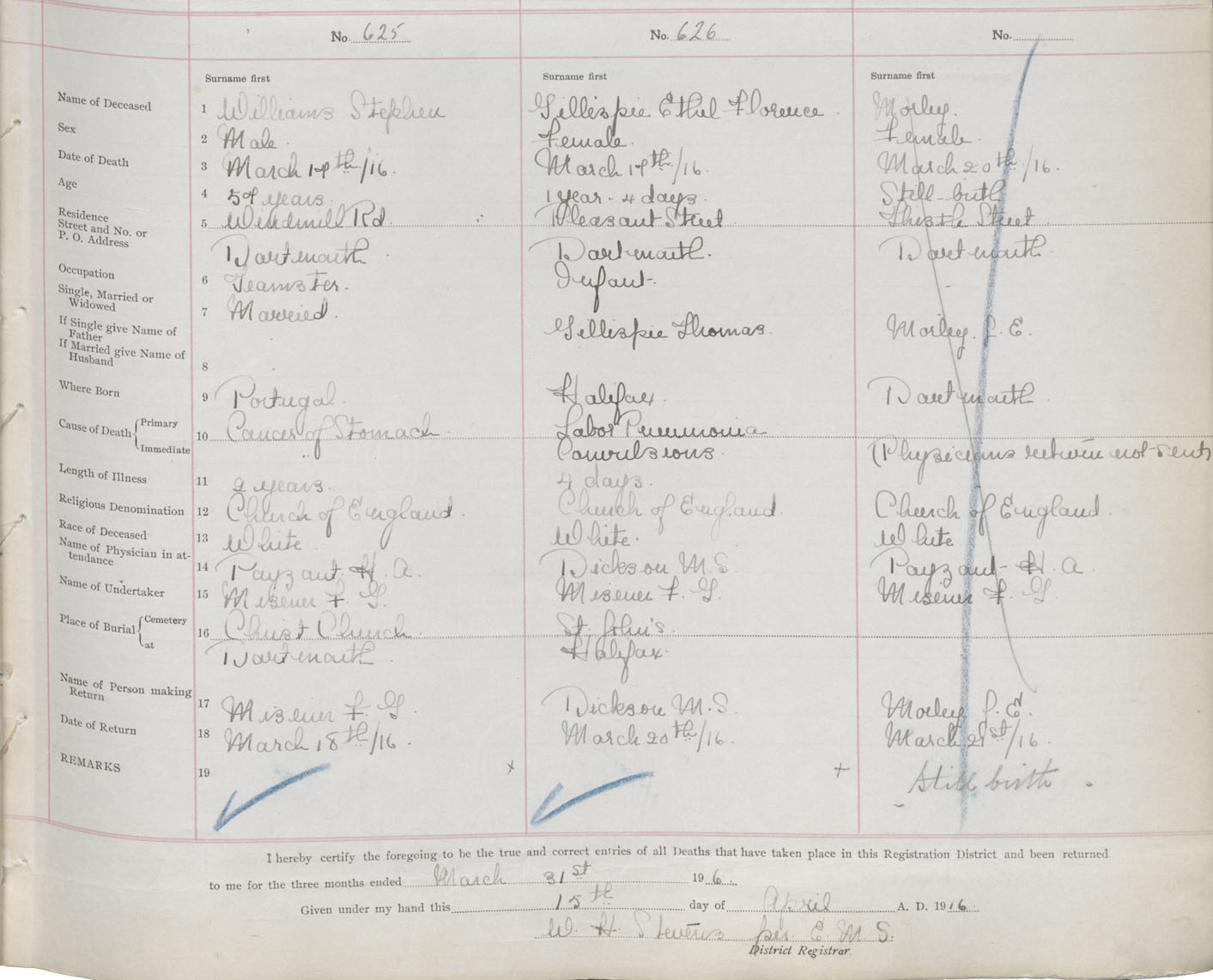 Female Death Registration: Year: 1916 book: 34 page: 189 number: 626