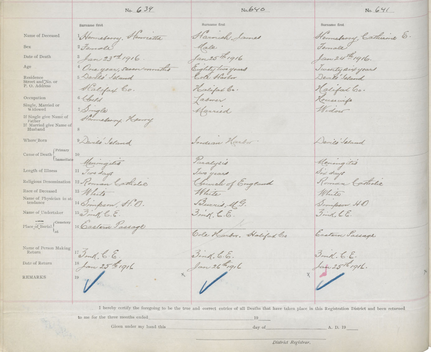 Female Death Registration: Year: 1916 book: 34 page: 194 number: 639