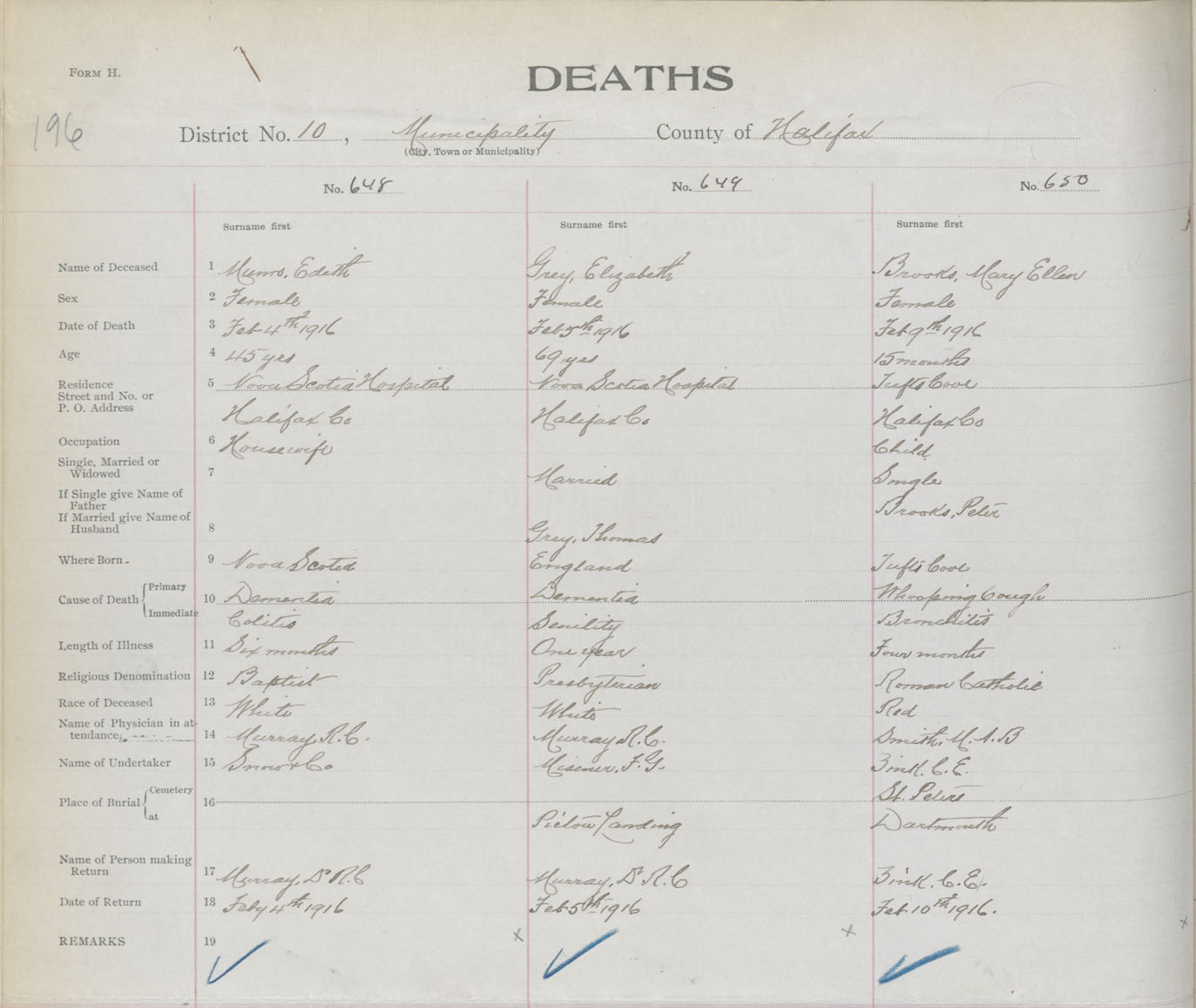 Female Death Registration: Year: 1916 book: 34 page: 196 number: 648