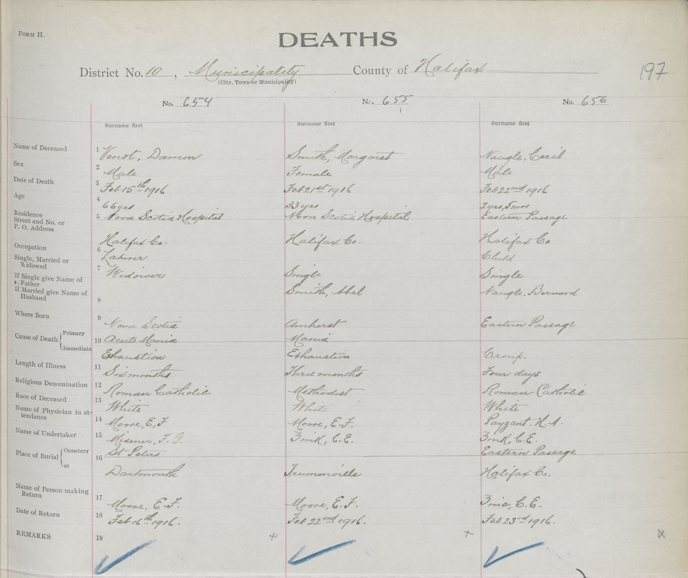 Male Death Registration: Year: 1916 book: 34 page: 197 number: 654