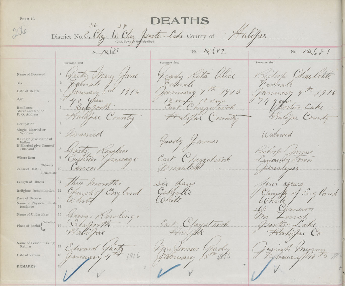 Female Death Registration: Year: 1916 book: 34 page: 206 number: 681