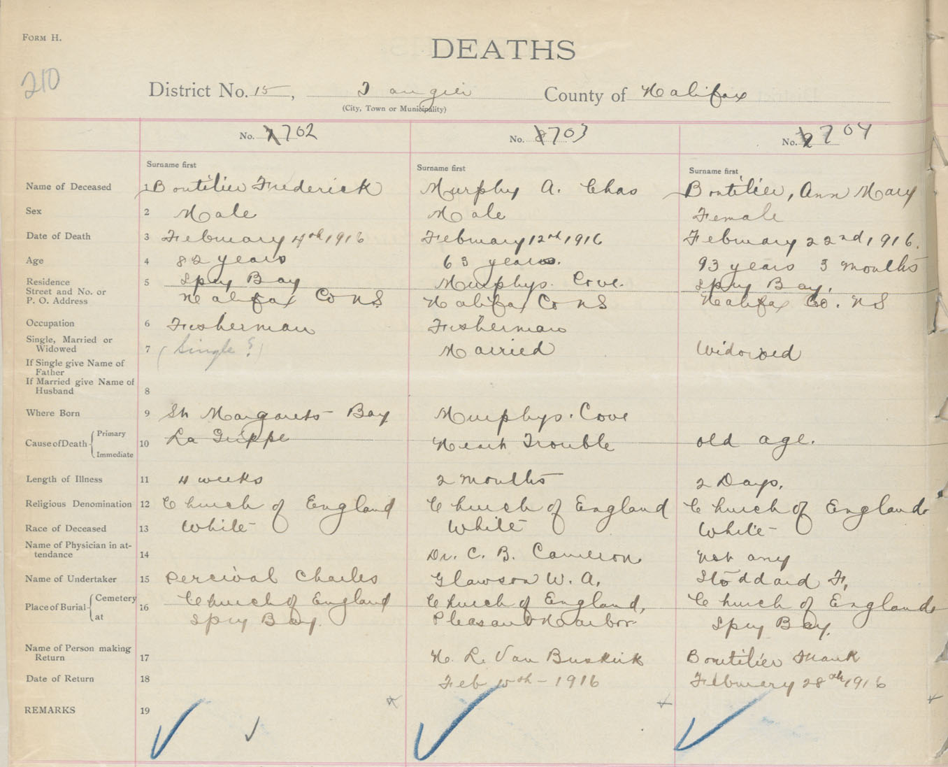 Male Death Registration: Year: 1916 book: 34 page: 210 number: 702