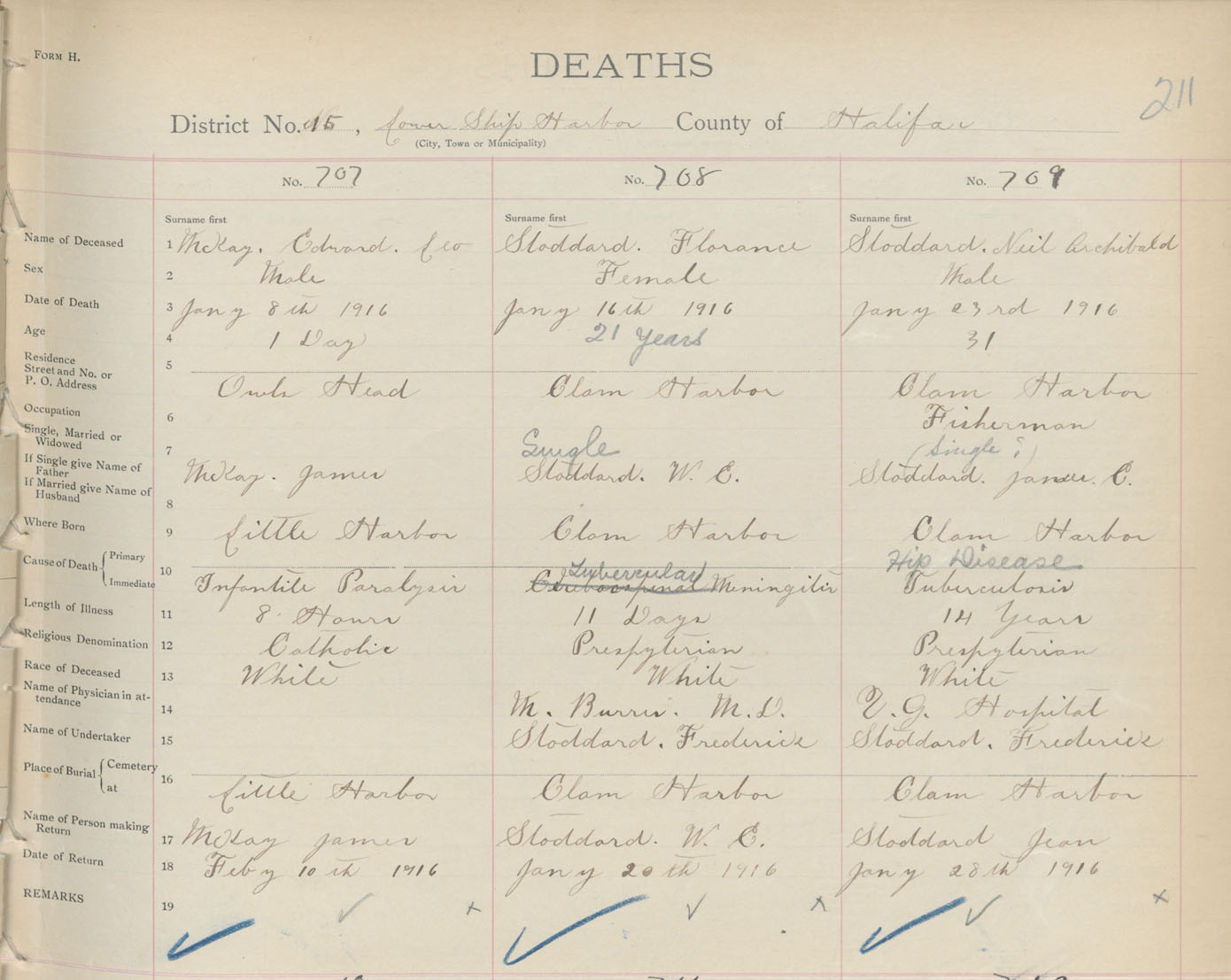 Male Death Registration: Year: 1916 book: 34 page: 211 number: 707