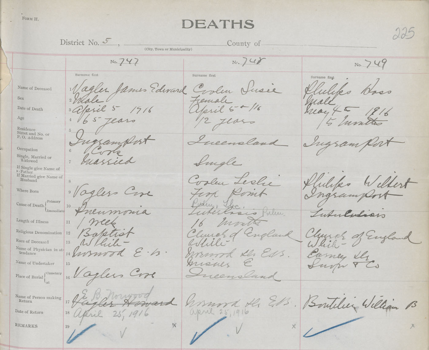 Male Death Registration: Year: 1916 book: 34 page: 225 number: 749