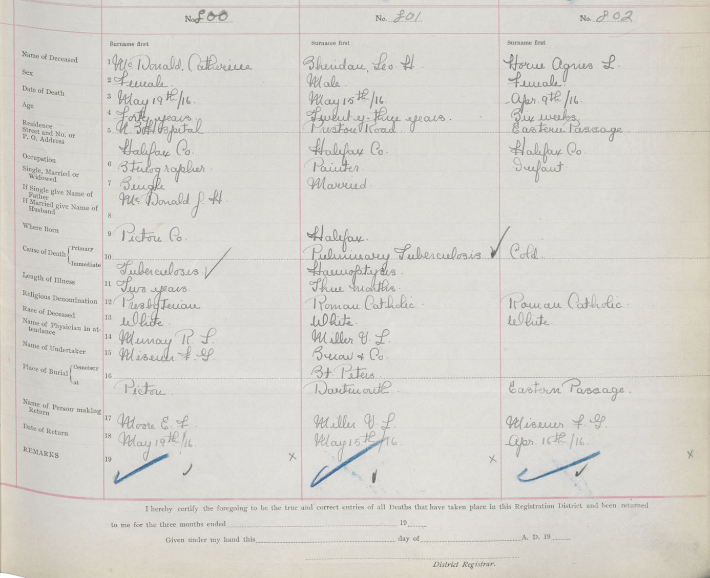Female Death Registration: Year: 1916 book: 34 page: 239 number: 802