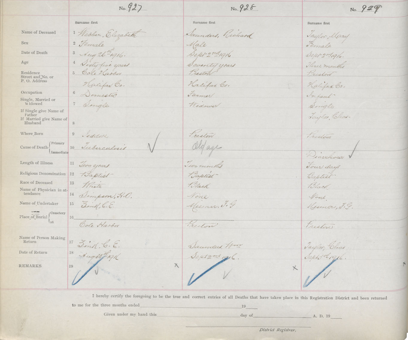 Female Death Registration: Year: 1916 book: 34 page: 282 number: 929