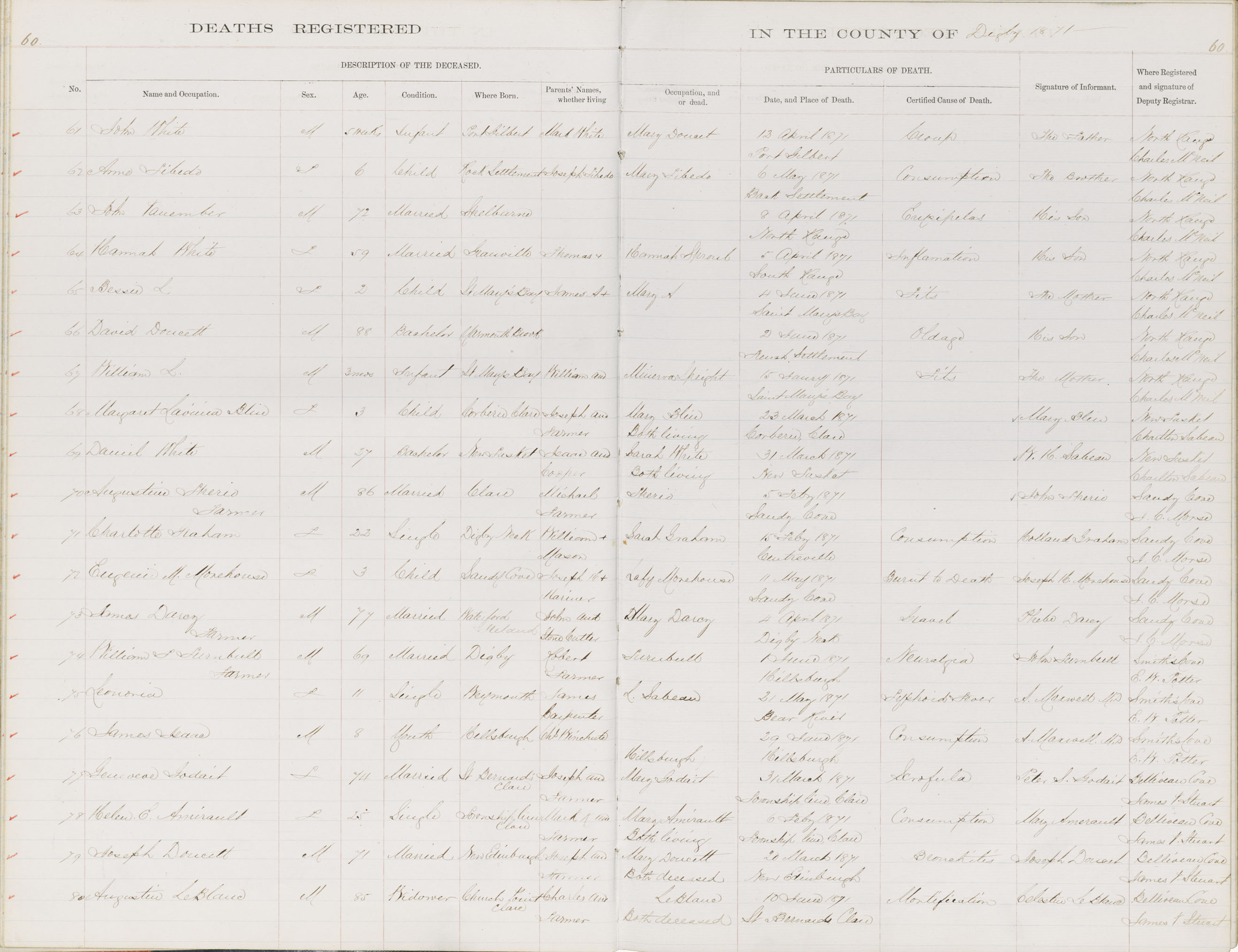 Death Registration: Year: 1871 book: 1806 page: 60 number: 61