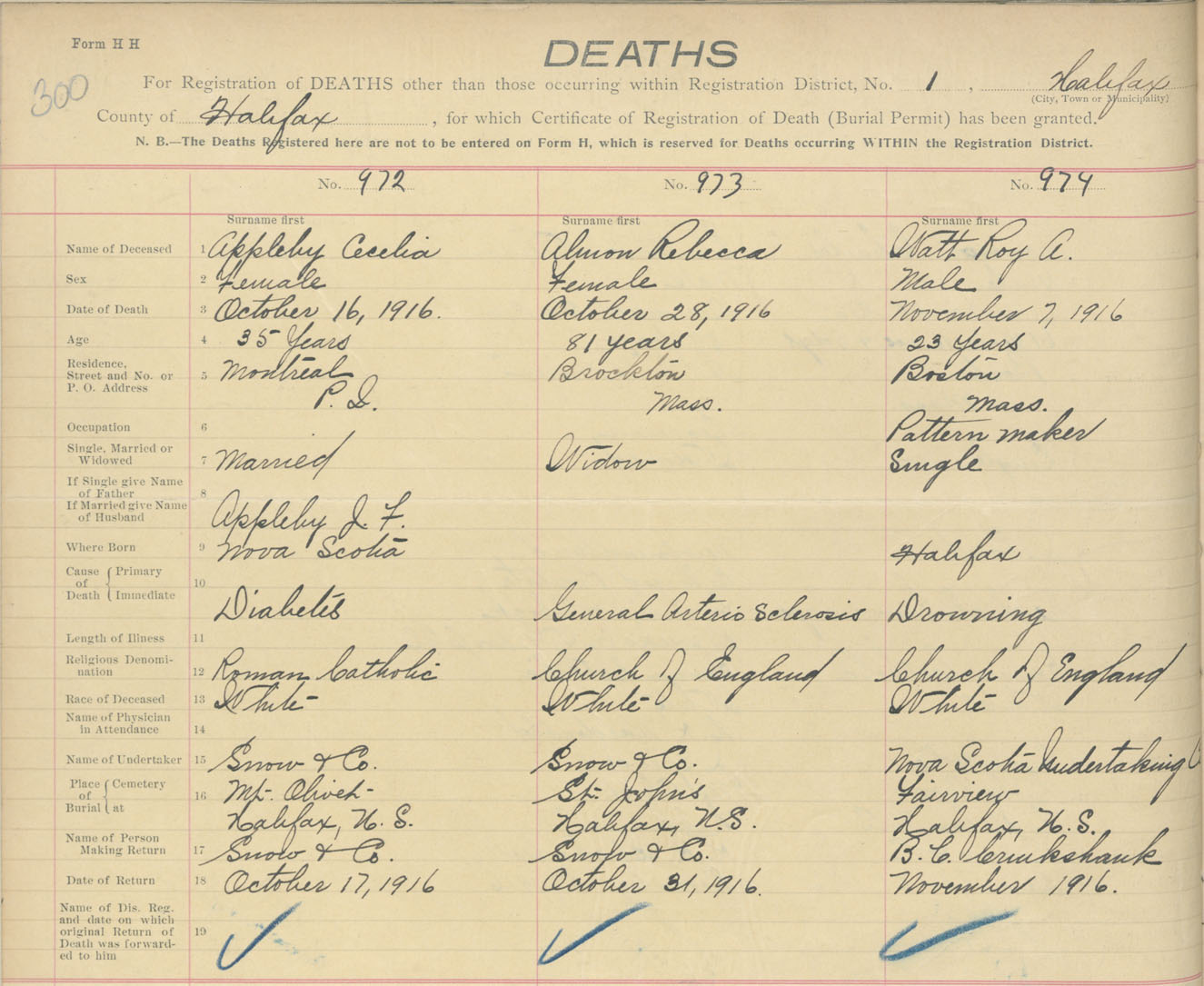 Female Death Registration: Year: 1916 book: 34 page: 300 number: 972