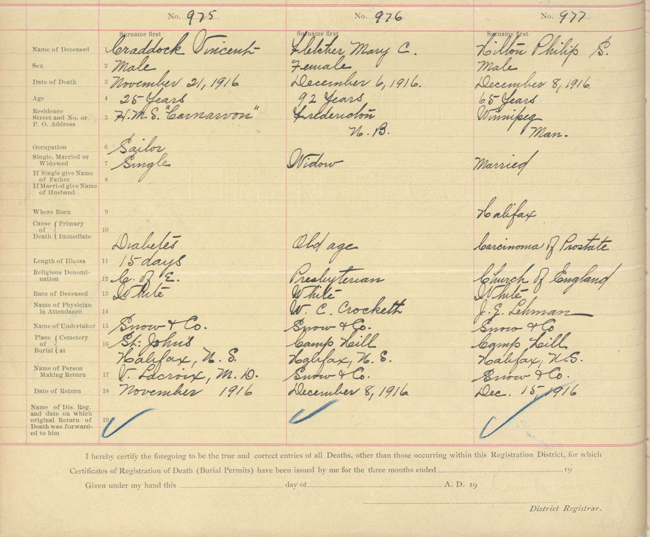 Male Death Registration: Year: 1916 book: 34 page: 300 number: 975