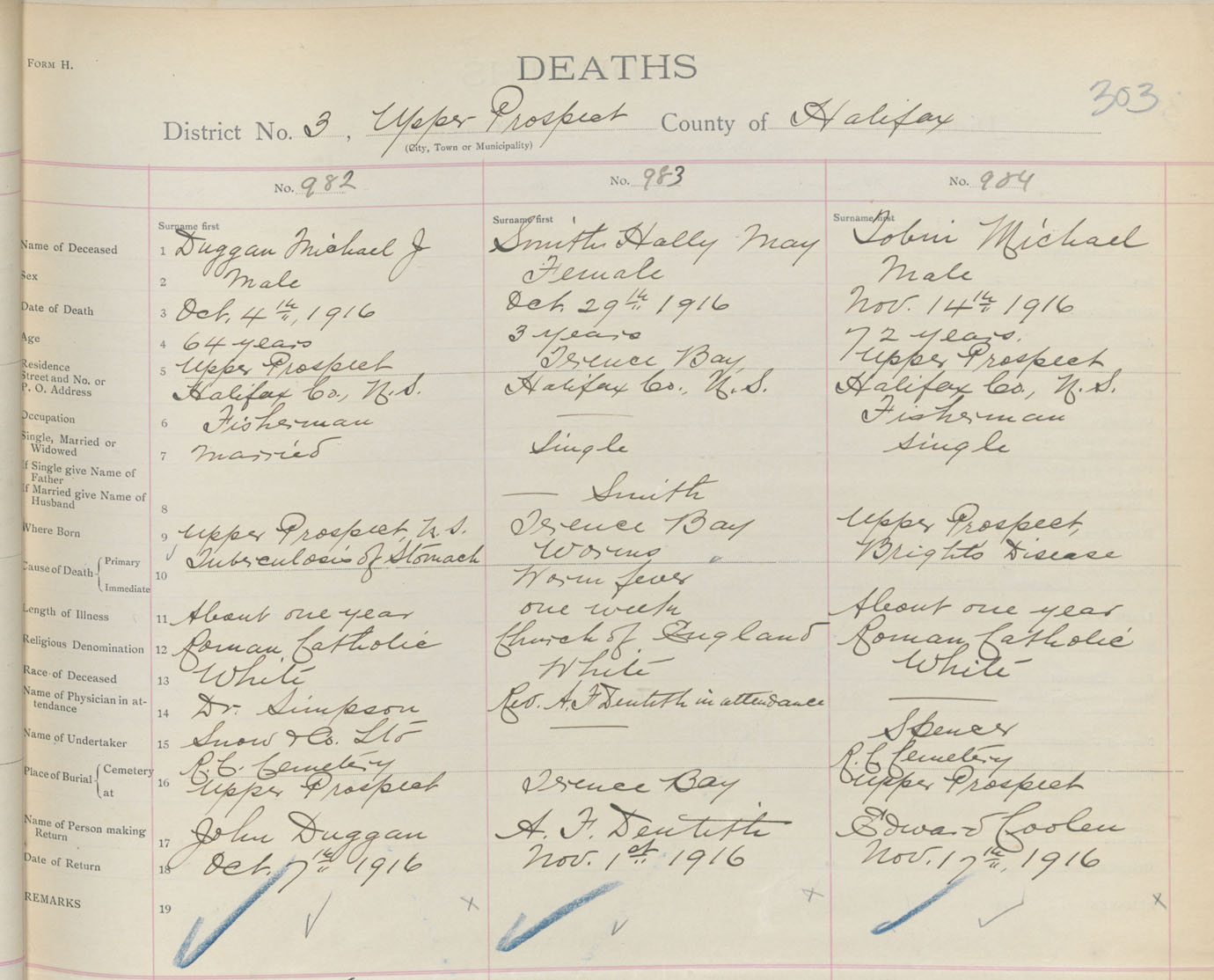 Male Death Registration: Year: 1916 book: 34 page: 303 number: 982