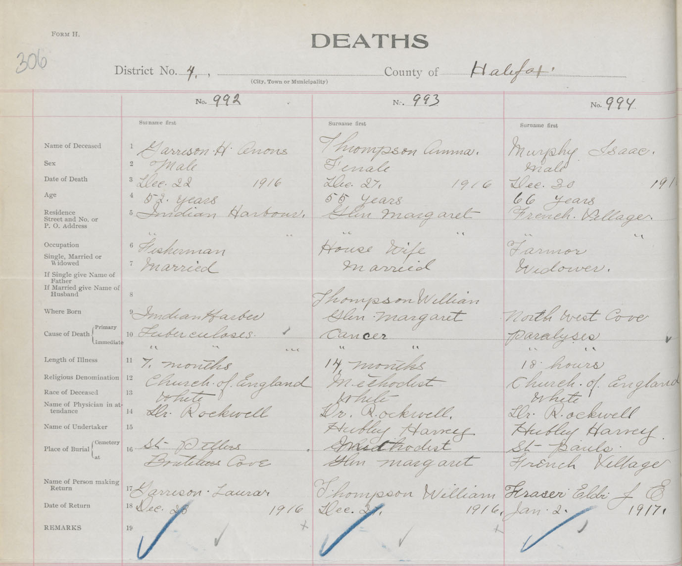 Male Death Registration: Year: 1916 book: 34 page: 306 number: 992