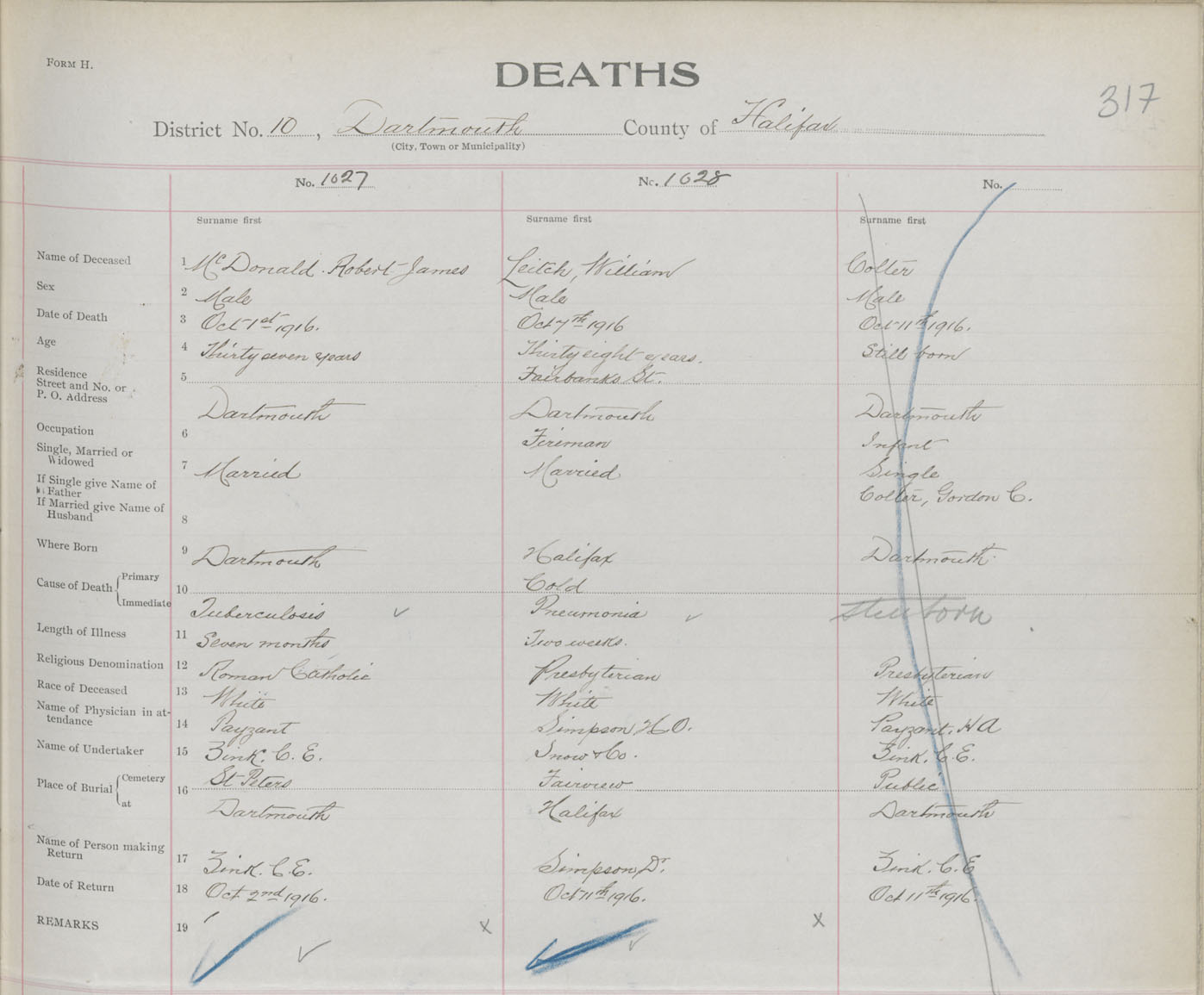 Male Death Registration: Year: 1916 book: 34 page: 317 number: 1027