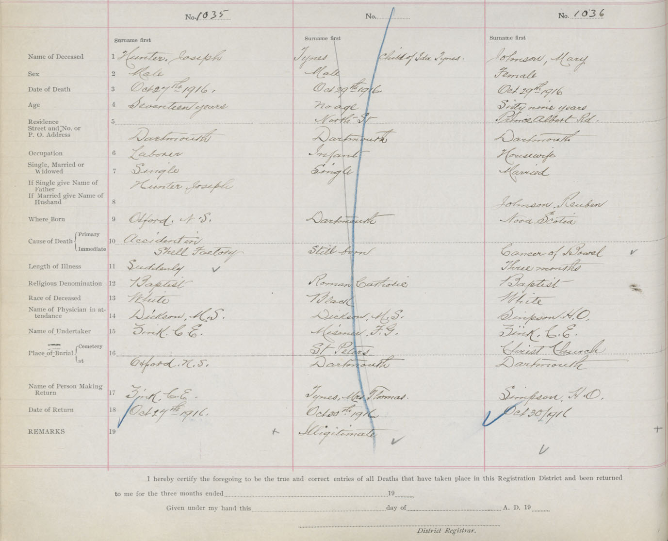 Male Death Registration: Year: 1916 book: 34 page: 318 number: 1035