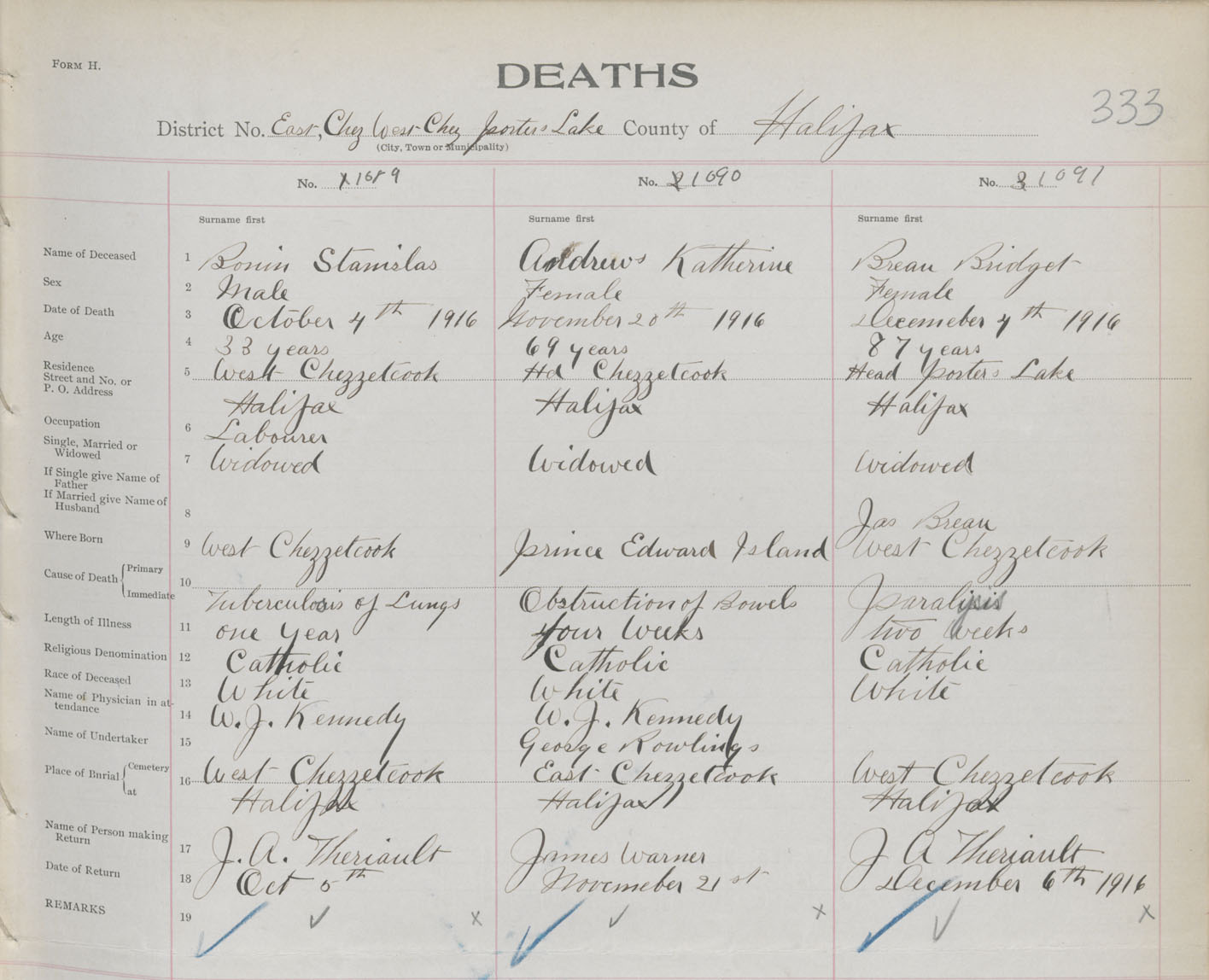 Male Death Registration: Year: 1916 book: 34 page: 333 number: 1089