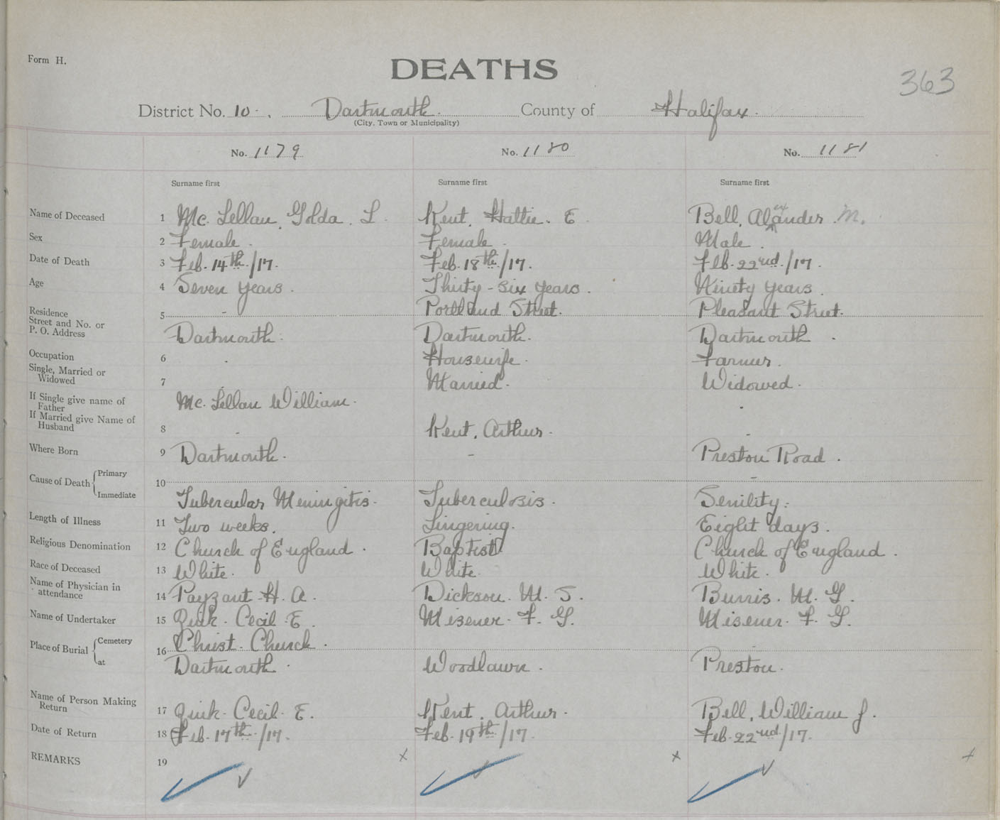 Female Death Registration: Year: 1917 book: 34 page: 363 number: 1179