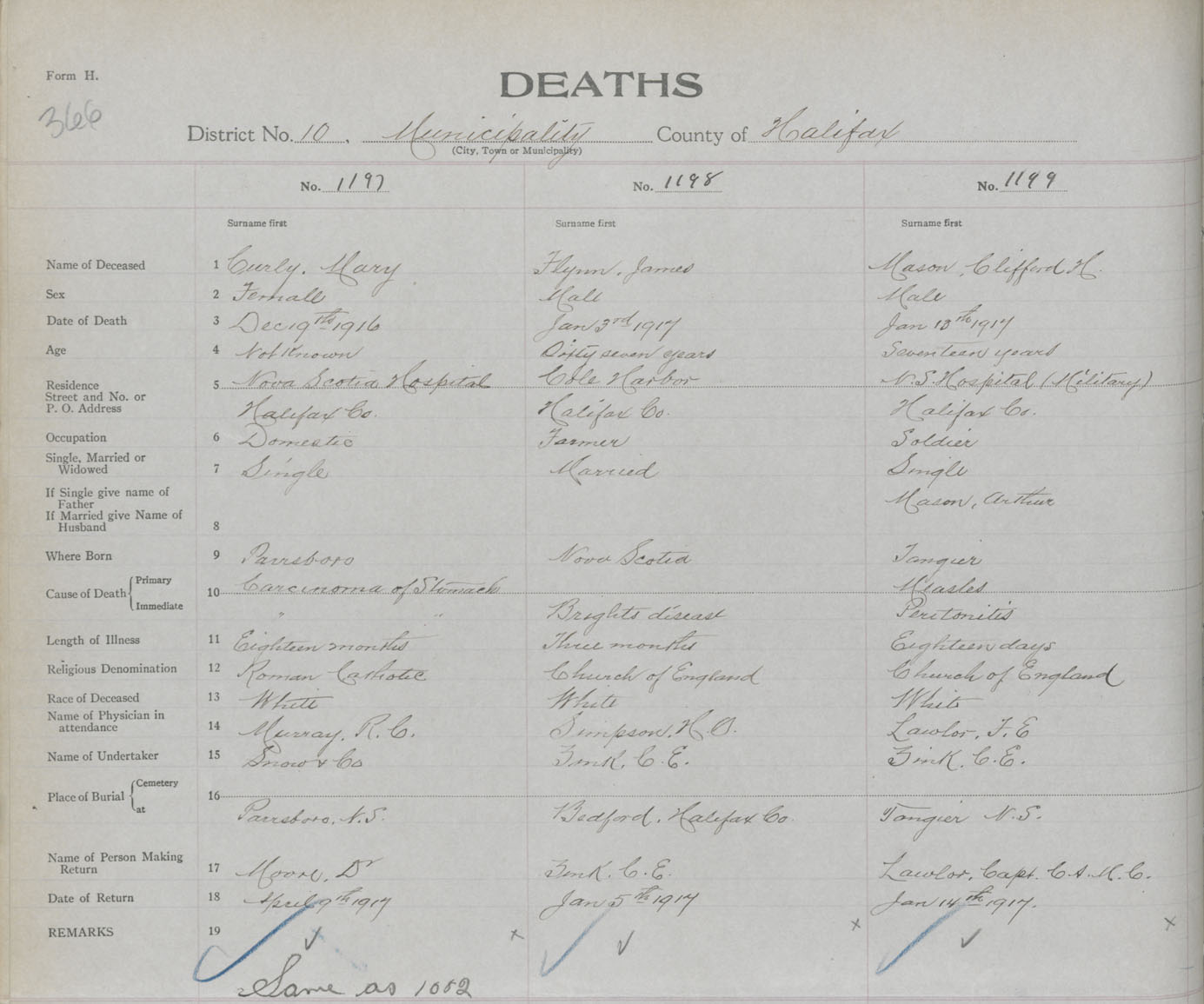 Female Death Registration: Year: 1916 book: 34 page: 366 number: 1197