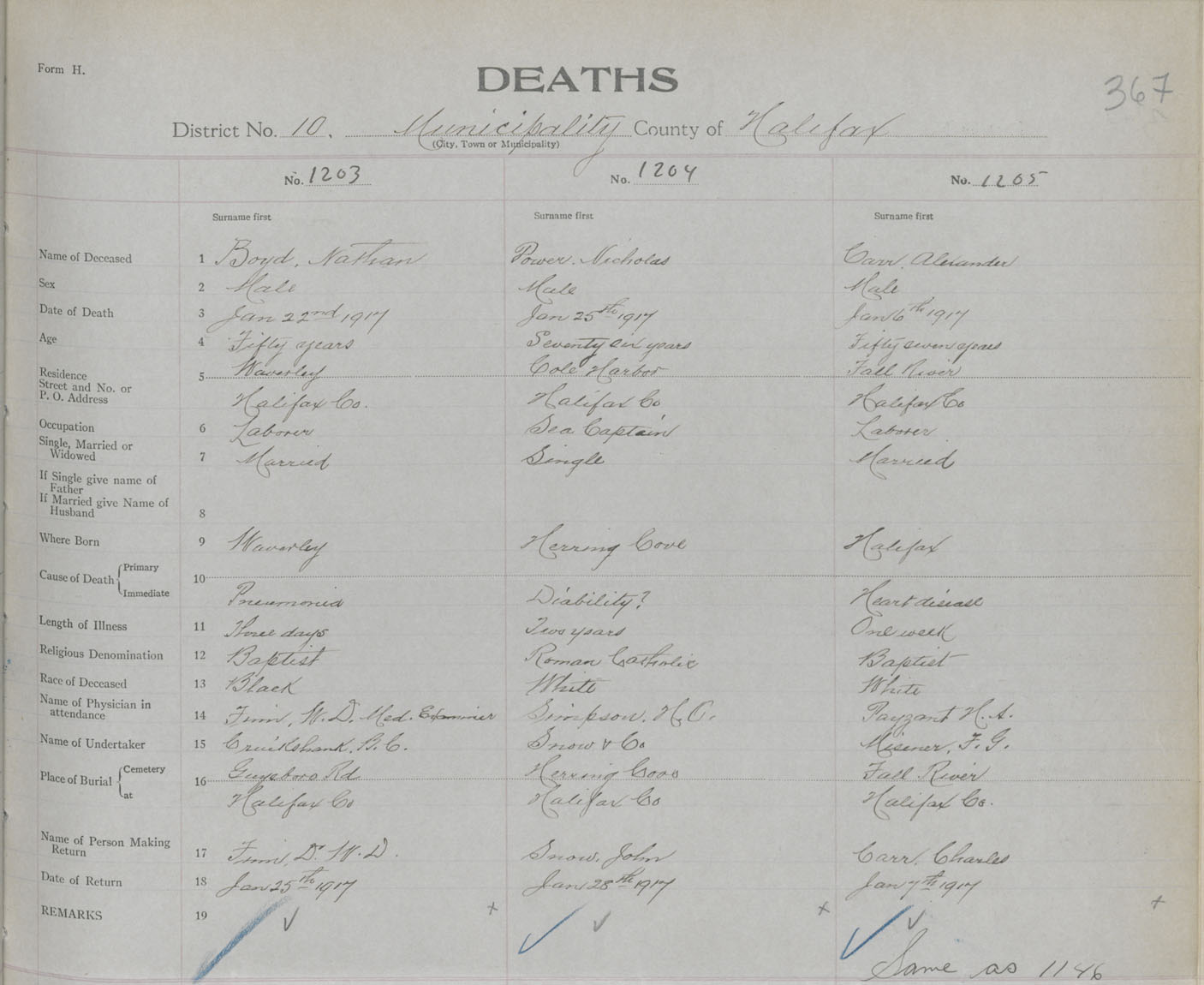 Male Death Registration: Year: 1917 book: 34 page: 367 number: 1203
