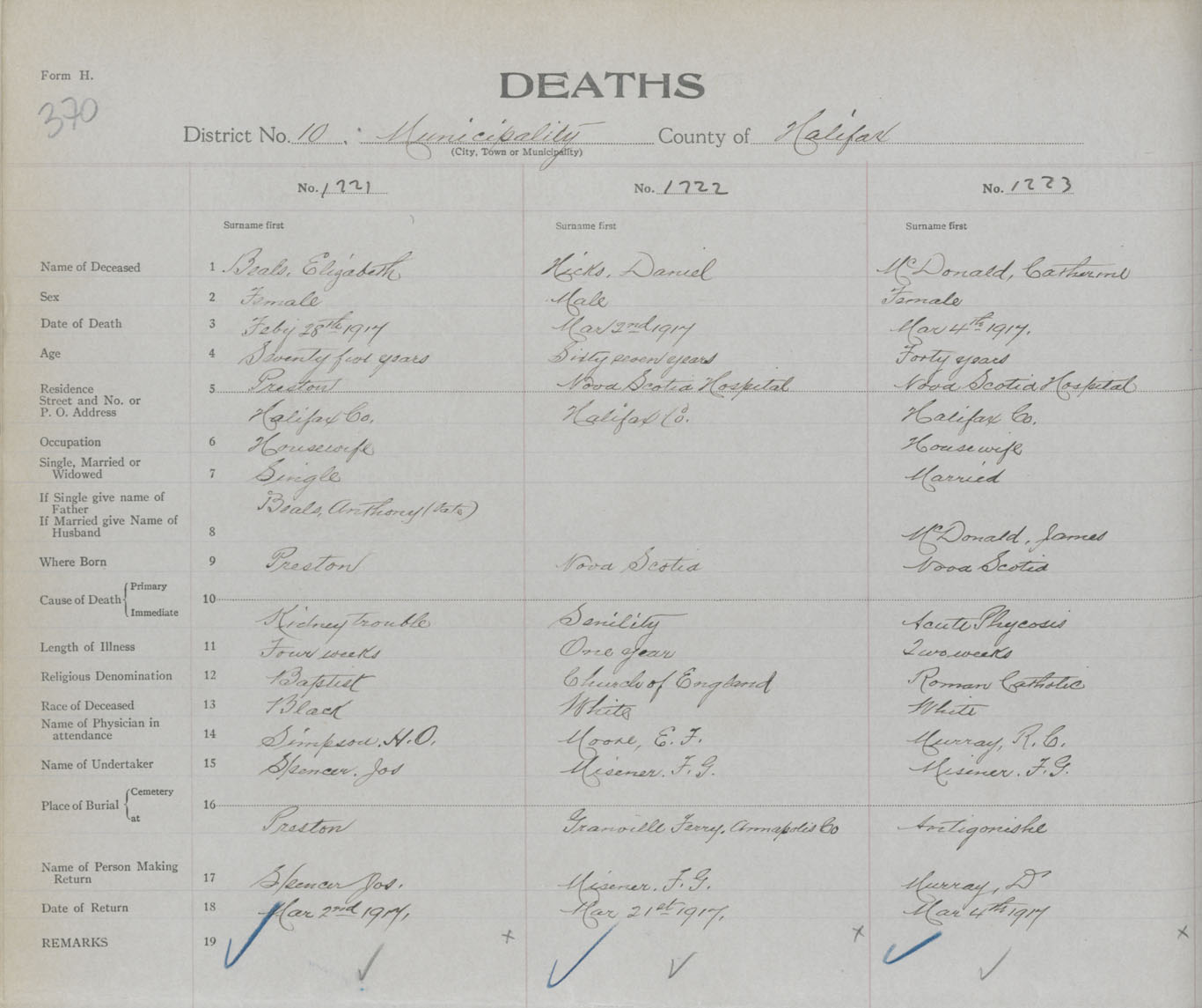 Female Death Registration: Year: 1917 book: 34 page: 370 number: 1221
