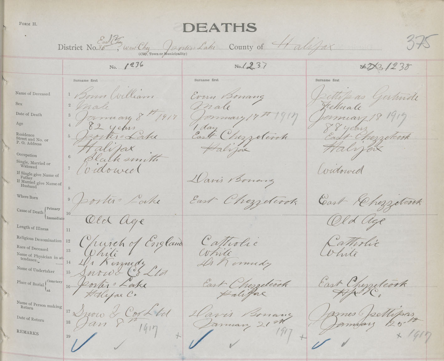 Male Death Registration: Year: 1917 book: 34 page: 375 number: 1236