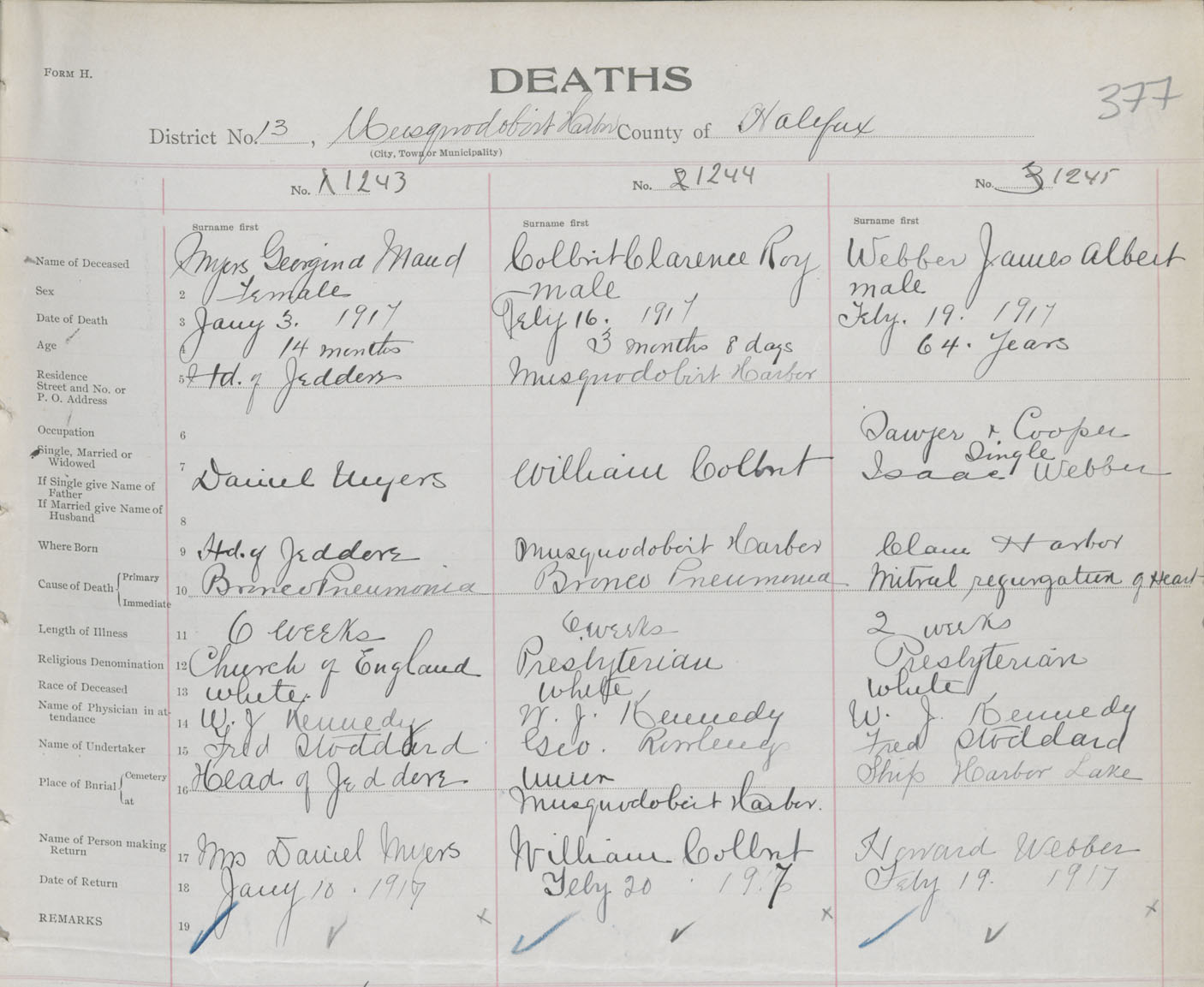 Female Death Registration: Year: 1917 book: 34 page: 377 number: 1243