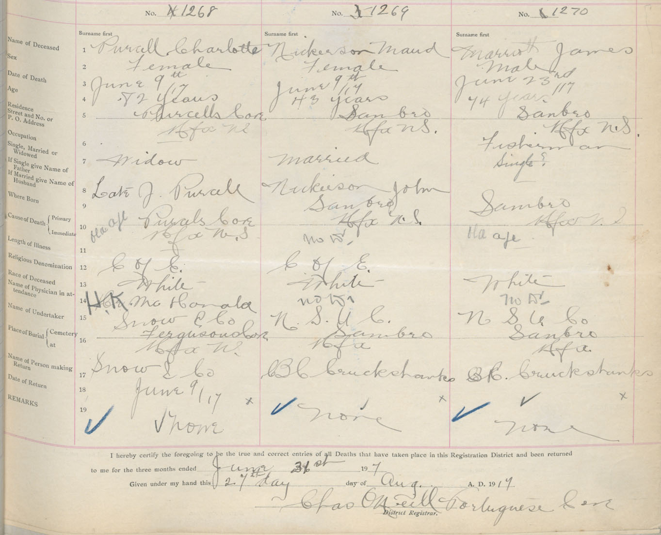 Female Death Registration: Year: 1917 book: 34 page: 387 number: 1268
