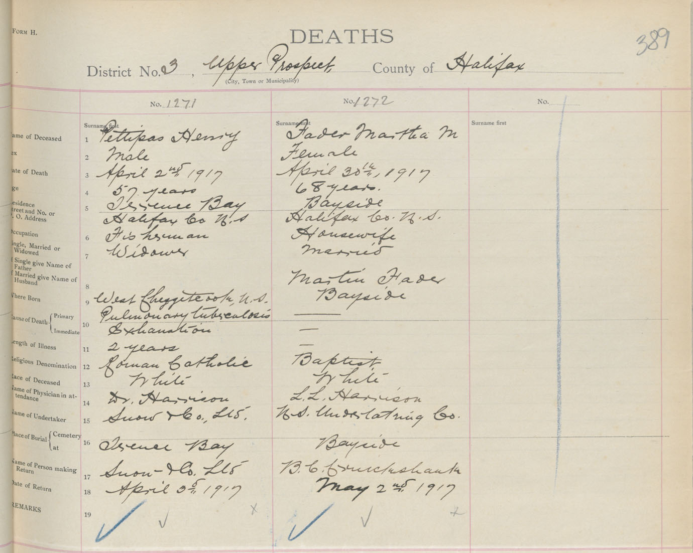 Male Death Registration: Year: 1917 book: 34 page: 389 number: 1271
