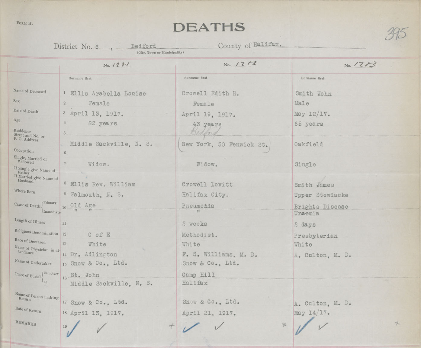 Female Death Registration: Year: 1917 book: 34 page: 395 number: 1281