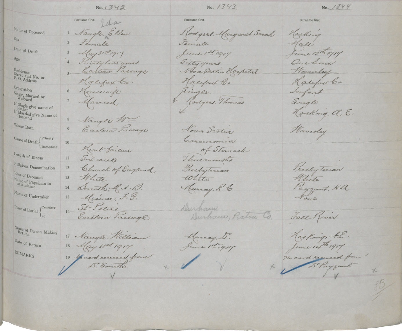 Female Death Registration: Year: 1917 book: 34 page: 409 number: 1342