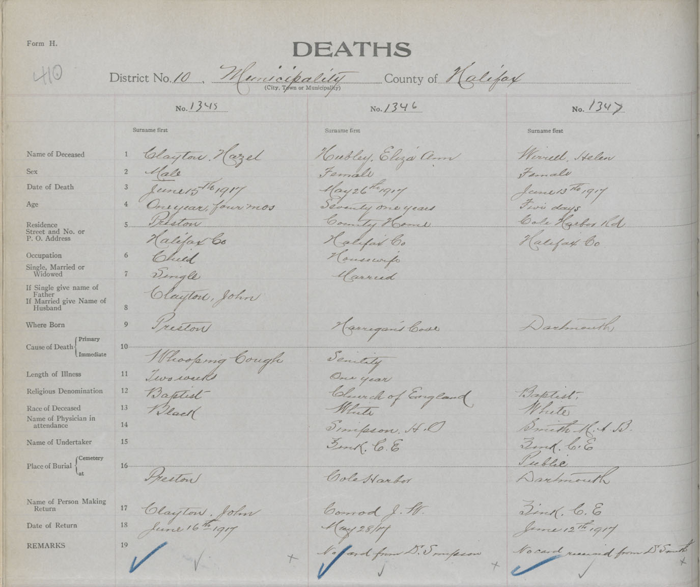 Male Death Registration: Year: 1917 book: 34 page: 410 number: 1345