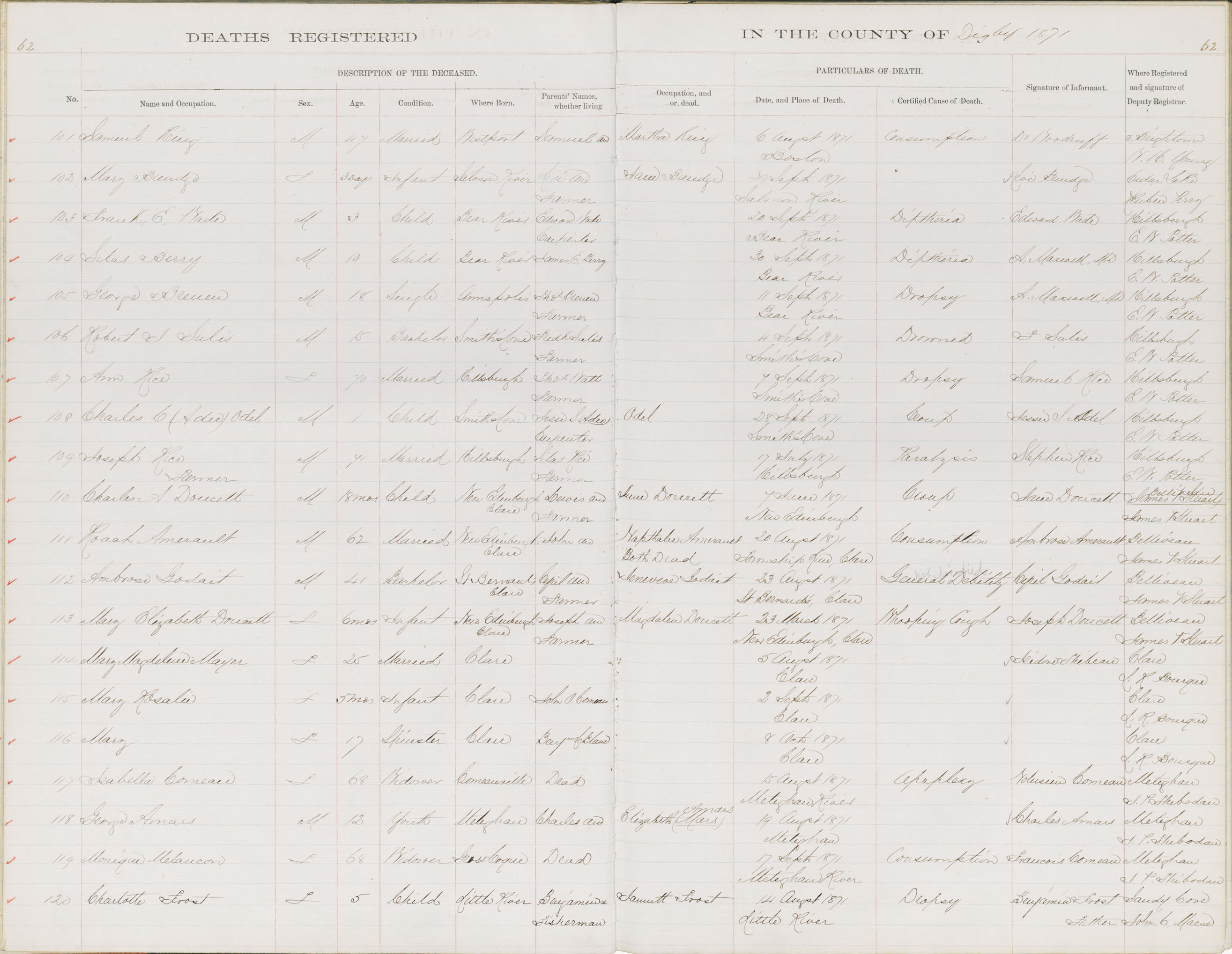 Death Registration: Year: 1871 book: 1806 page: 62 number: 101