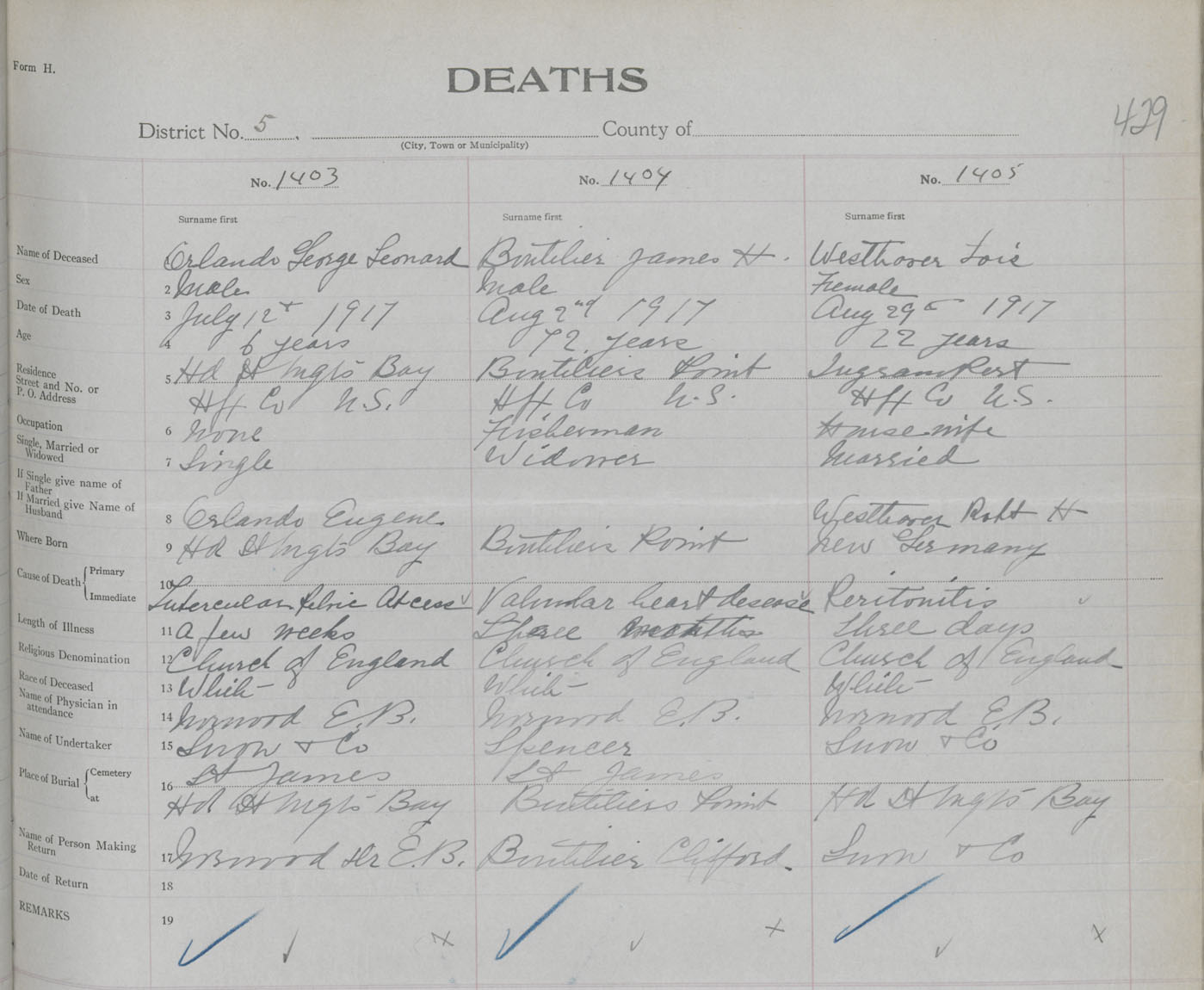 Female Death Registration: Year: 1917 book: 34 page: 429 number: 1405