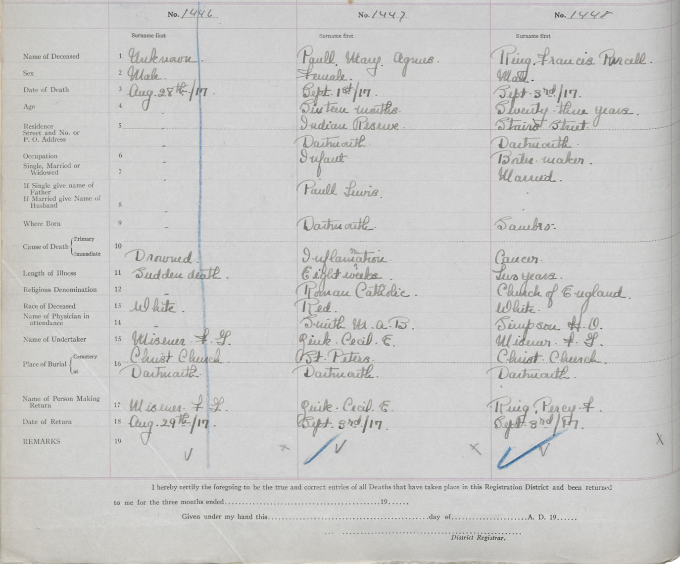 Male Death Registration: Year: 1917 book: 34 page: 440 number: 1448