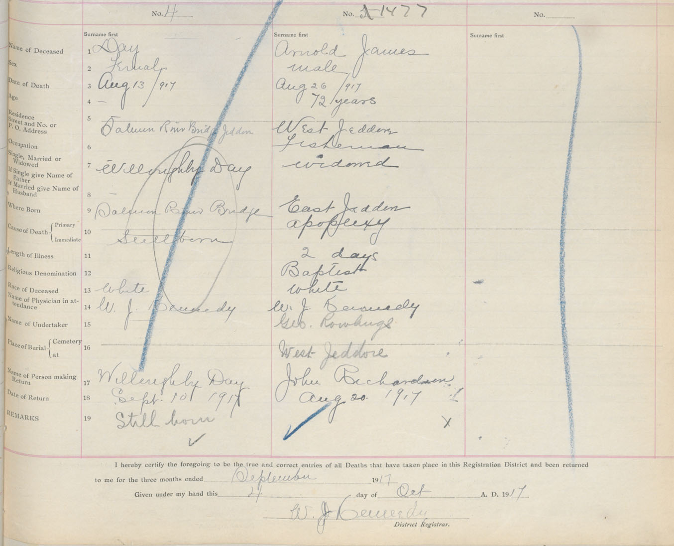 Male Death Registration: Year: 1917 book: 34 page: 451 number: 1477