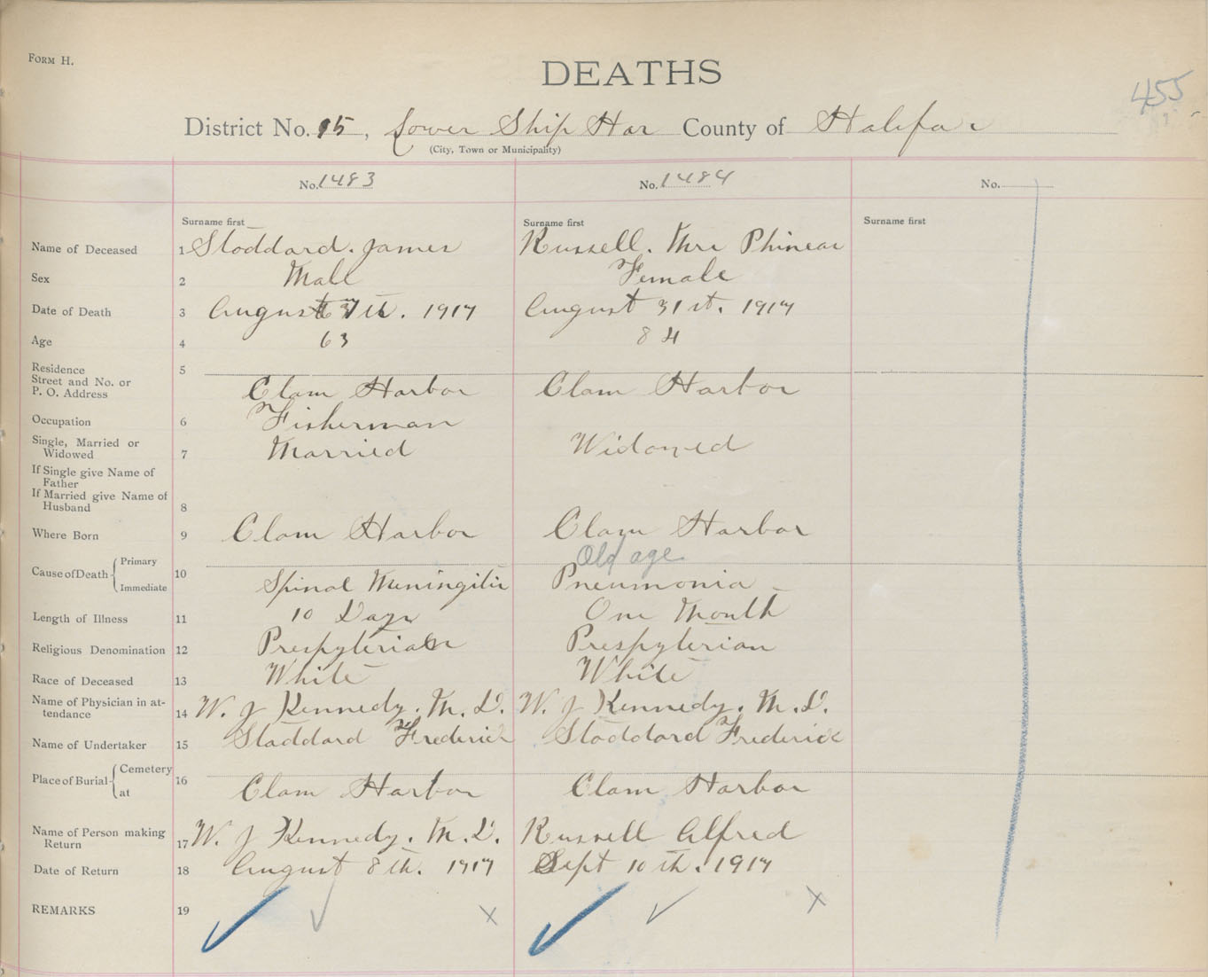 Female Death Registration: Year: 1917 book: 34 page: 455 number: 1484