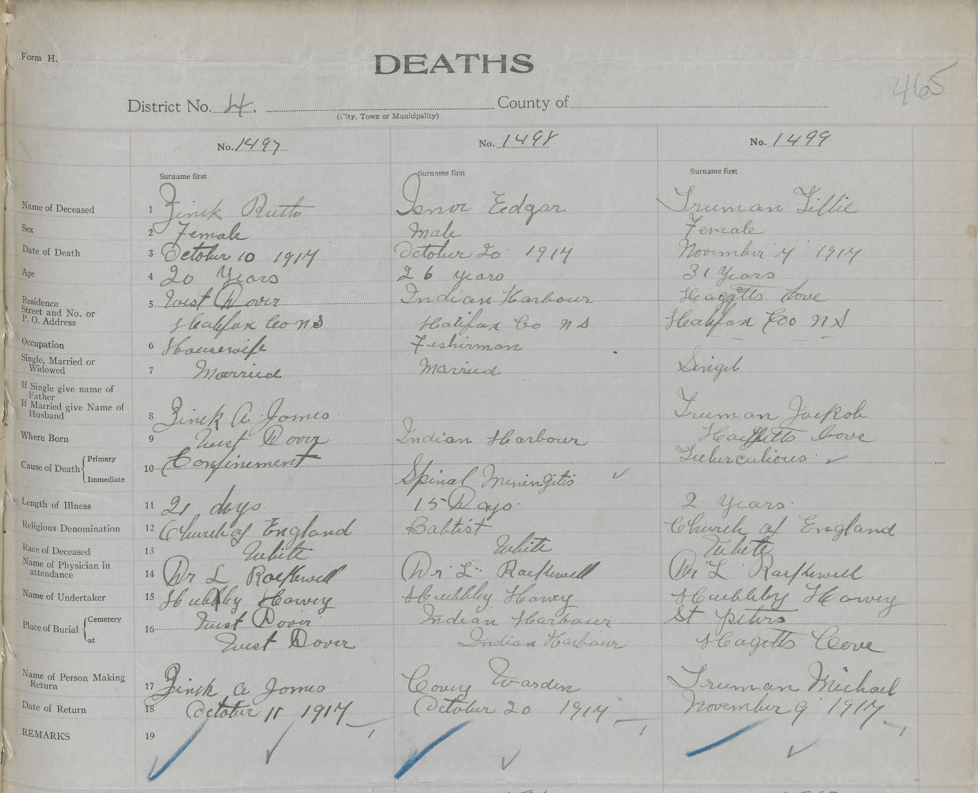 Female Death Registration: Year: 1917 book: 34 page: 465 number: 1499