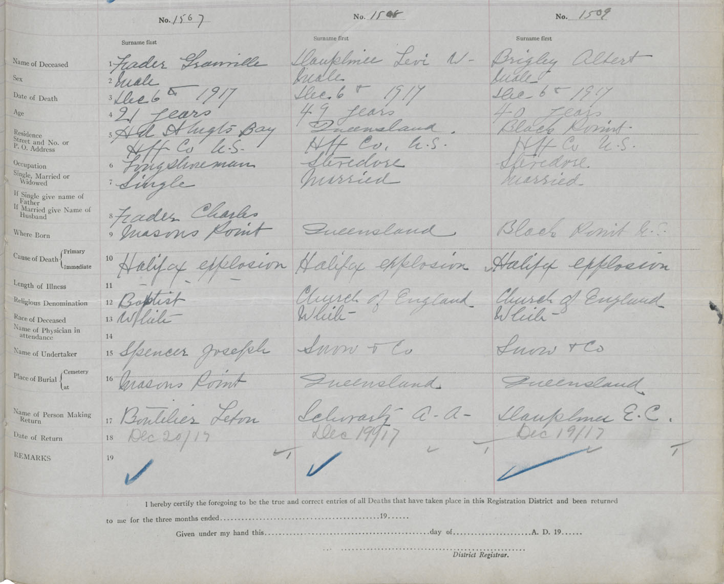 Male Death Registration: Year: 1917 book: 34 page: 467 number: 1509