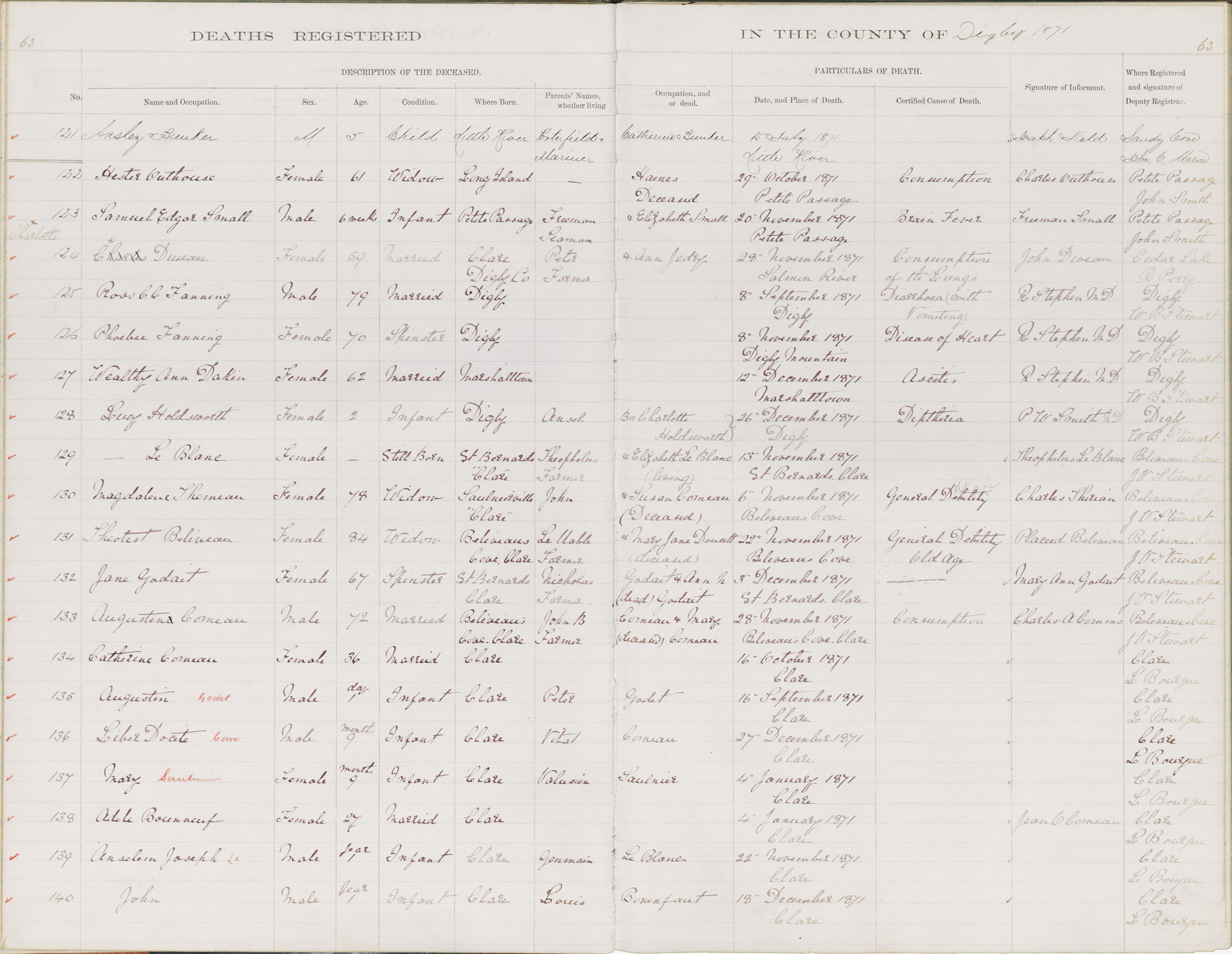 Death Registration: Year: 1871 book: 1806 page: 63 number: 121