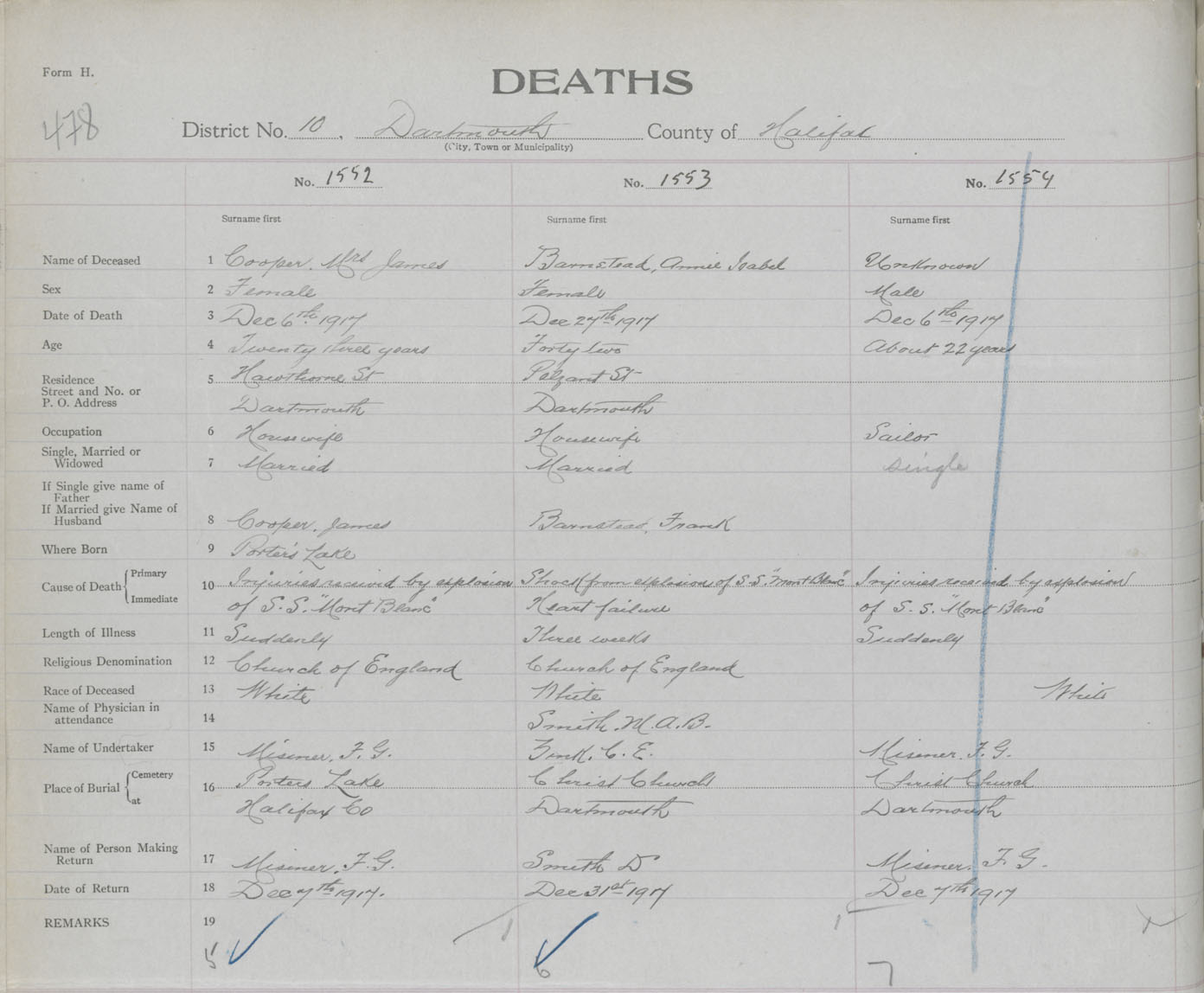 Male Death Registration: Year: 1917 book: 34 page: 478 number: 1554