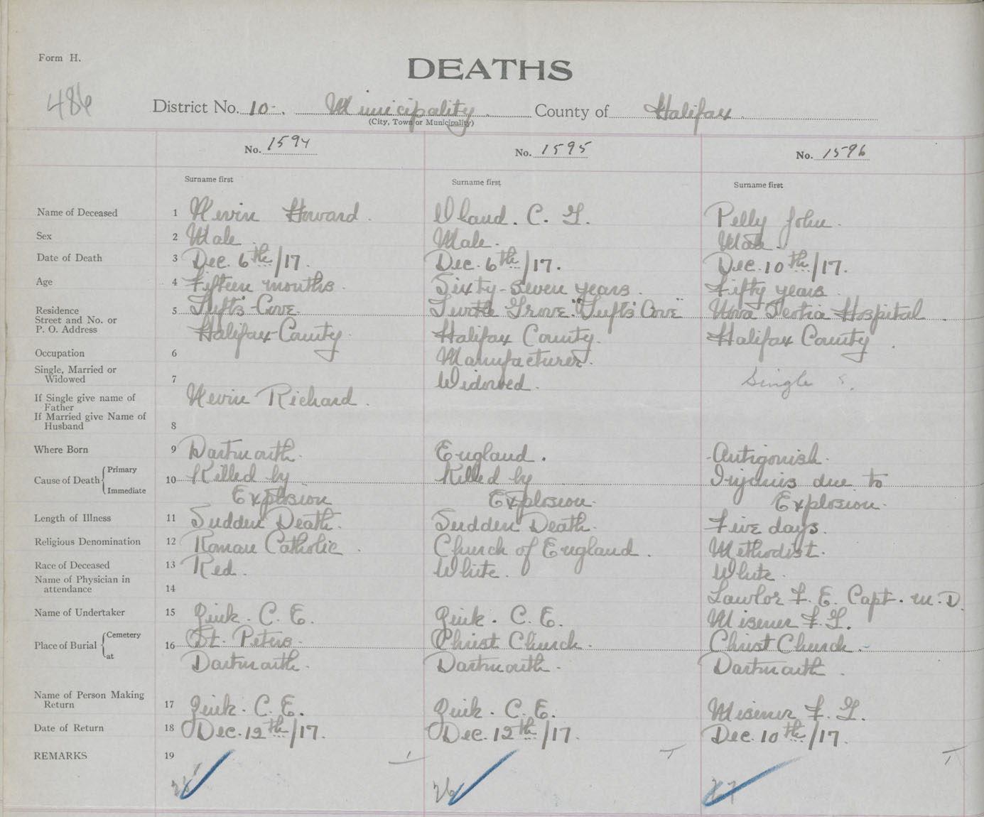 Male Death Registration: Year: 1917 book: 34 page: 486 number: 1596