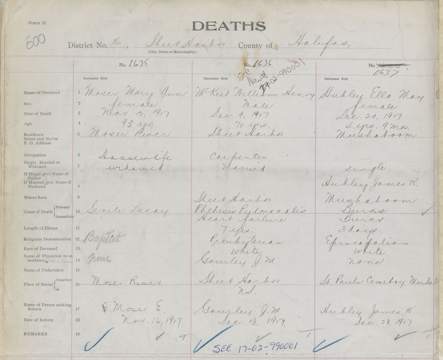 Female Death Registration: Year: 1917 book: 34 page: 500 number: 1637