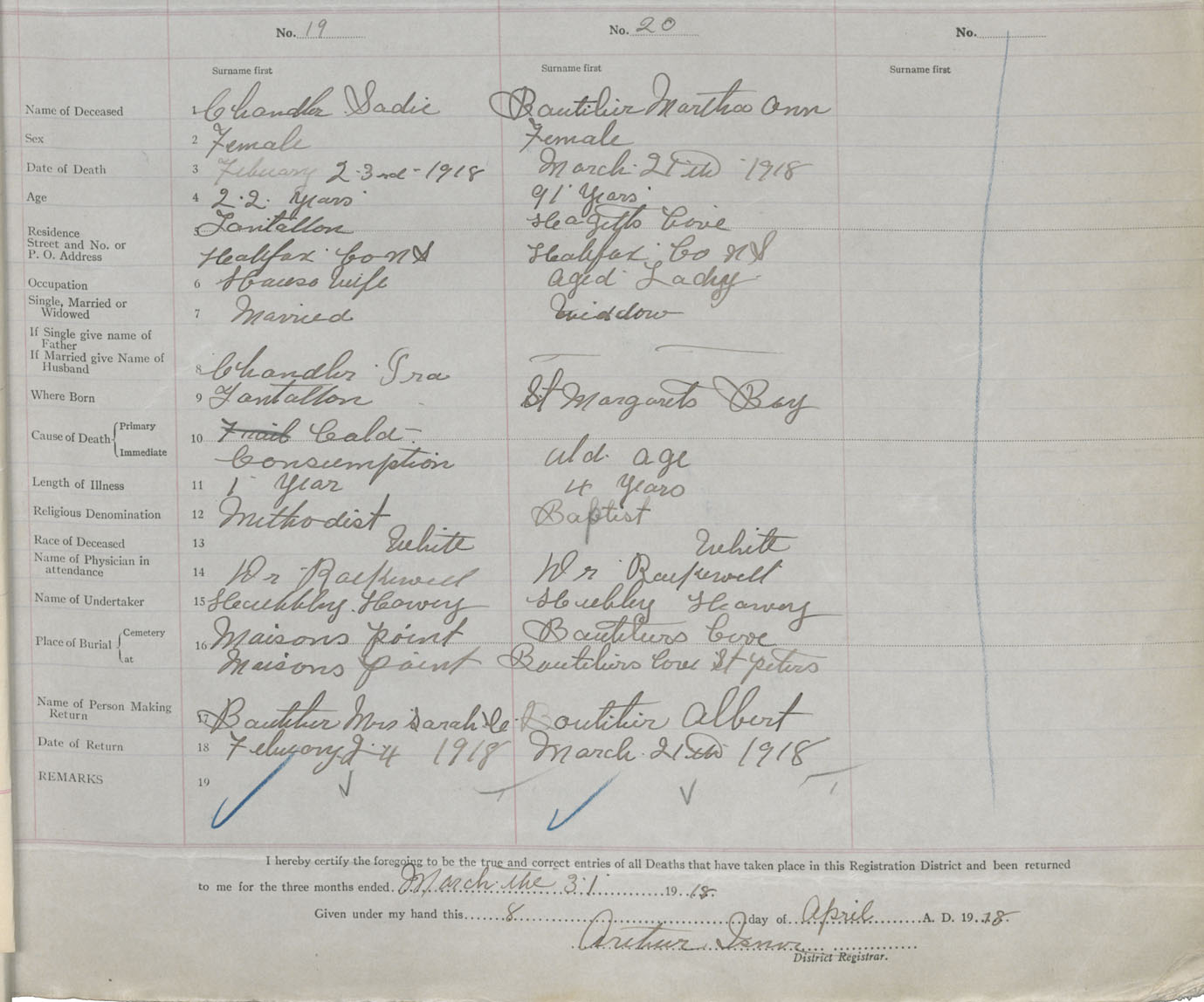 Female Death Registration: Year: 1918 book: 35 page: 7 number: 20