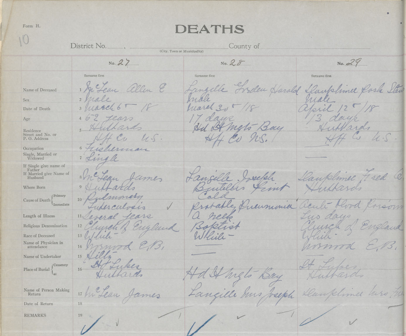 Male Death Registration: Year: 1918 book: 35 page: 10 number: 29