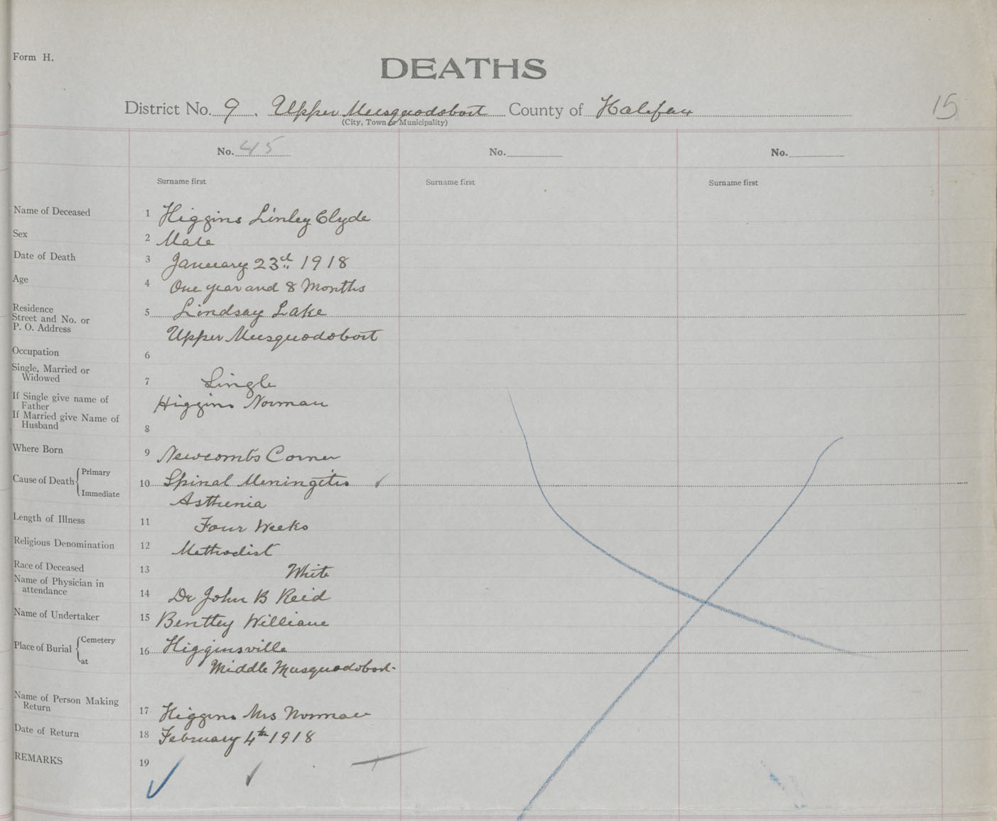 Male Death Registration: Year: 1918 book: 35 page: 15 number: 45