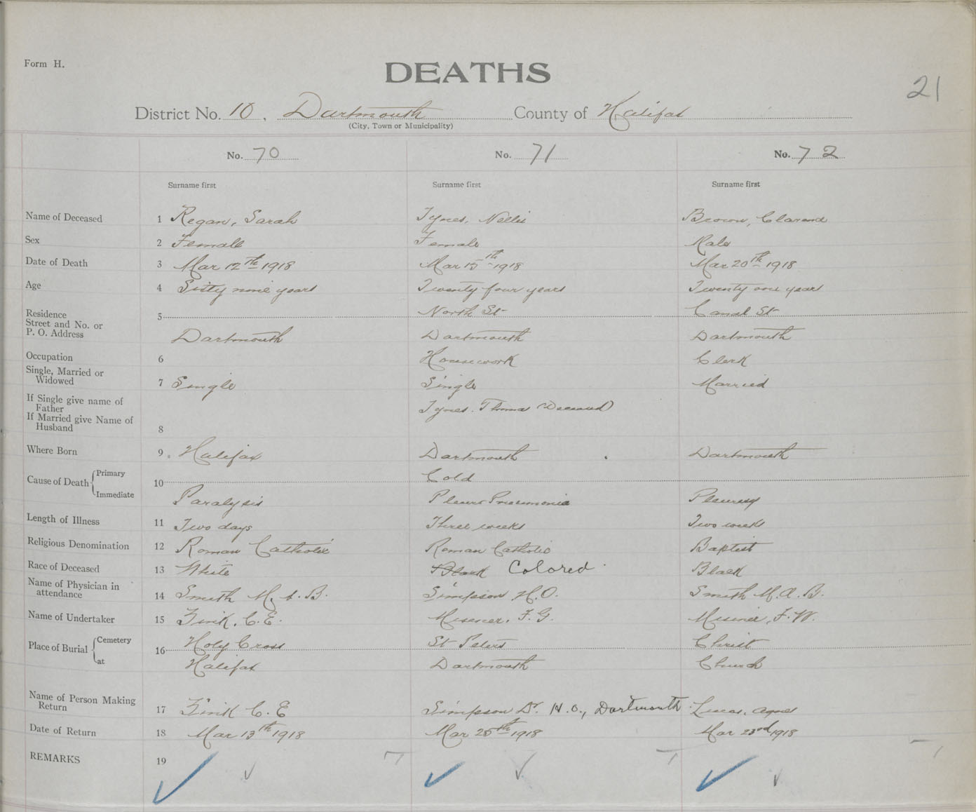 Male Death Registration: Year: 1918 book: 35 page: 21 number: 72