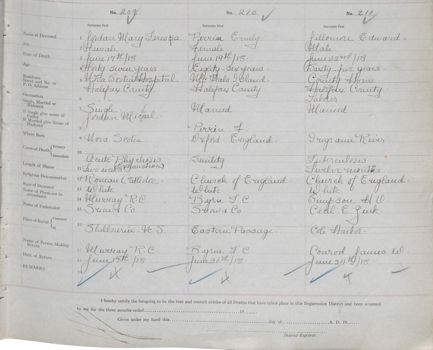 Female Death Registration: Year: 1918 book: 35 page: 67 number: 209