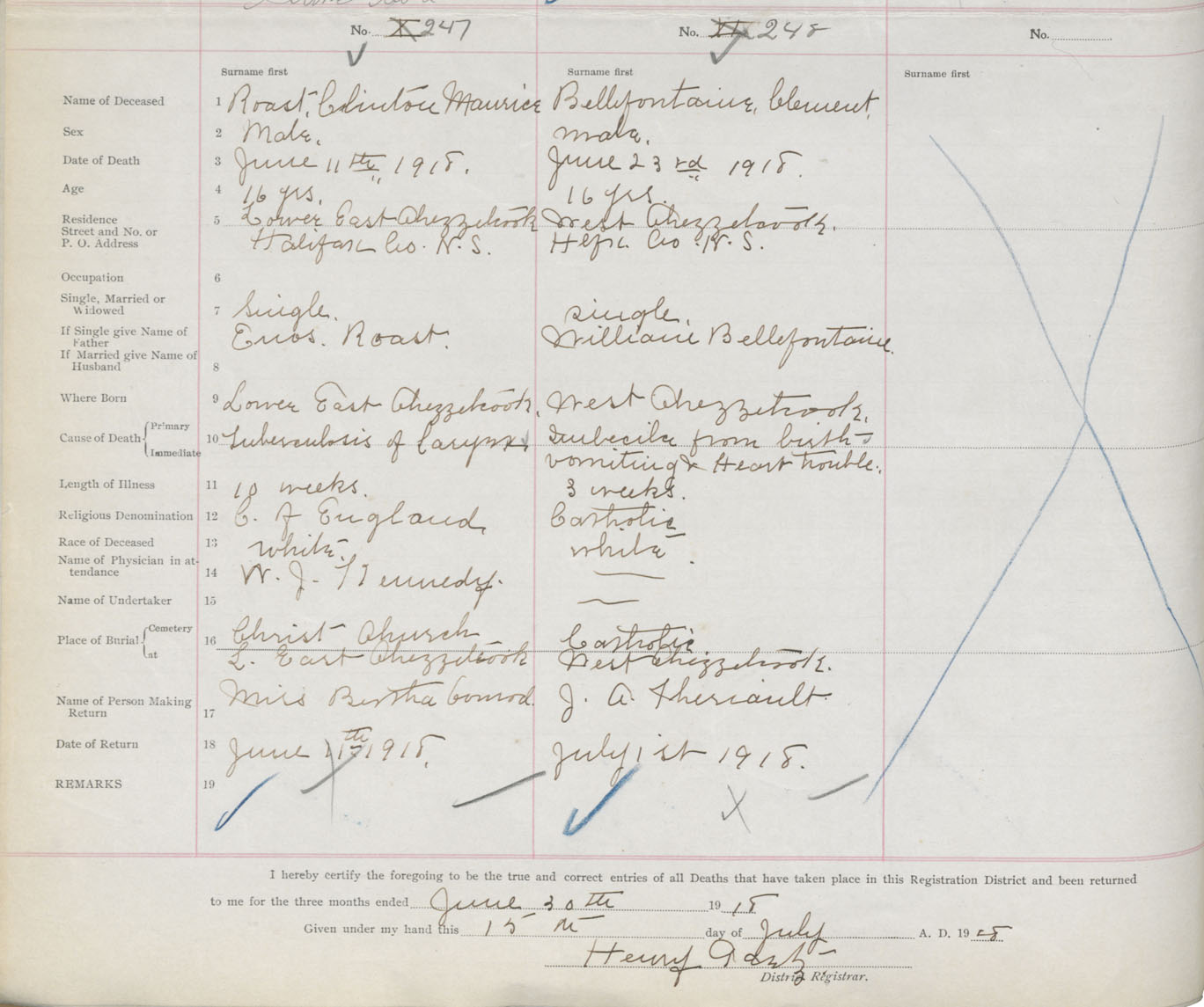 Male Death Registration: Year: 1918 book: 35 page: 74 number: 247