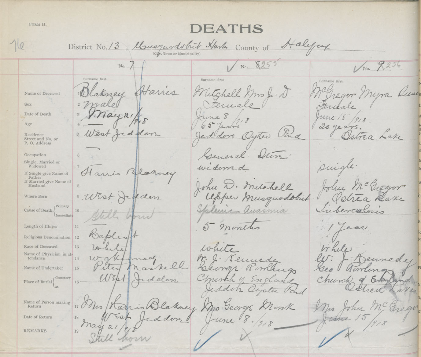 Death Registration: Year: 1918 book: 35 page: 76 number: 255