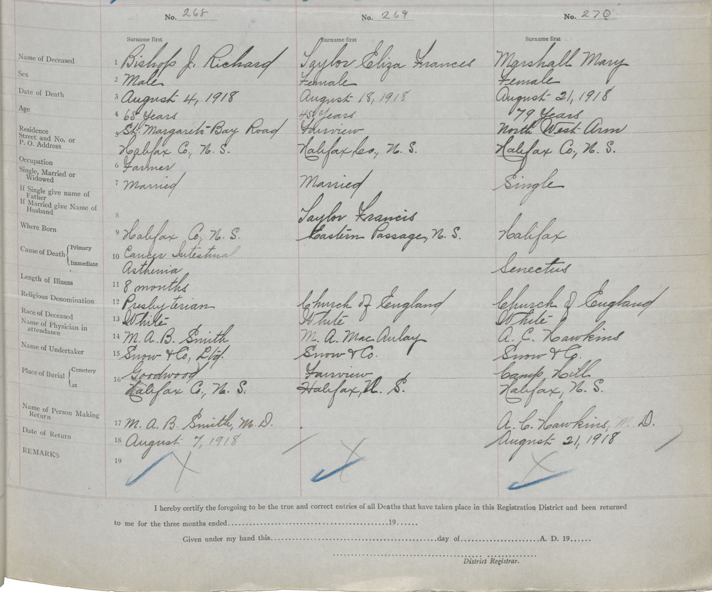 Death Registration: Year: 1918 book: 35 page: 81 number: 268